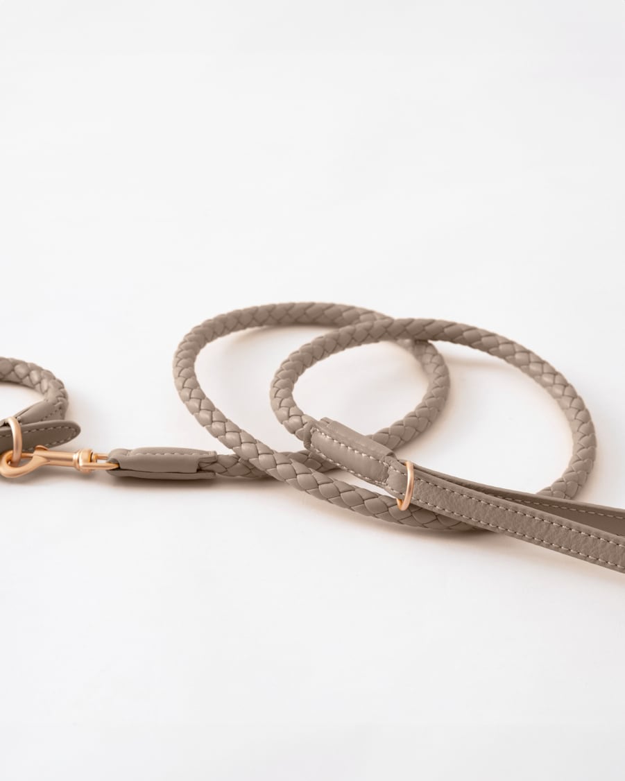 FERDINANDO - BRAIDED LEATHER LEASH LAZY TAUPE 13MM