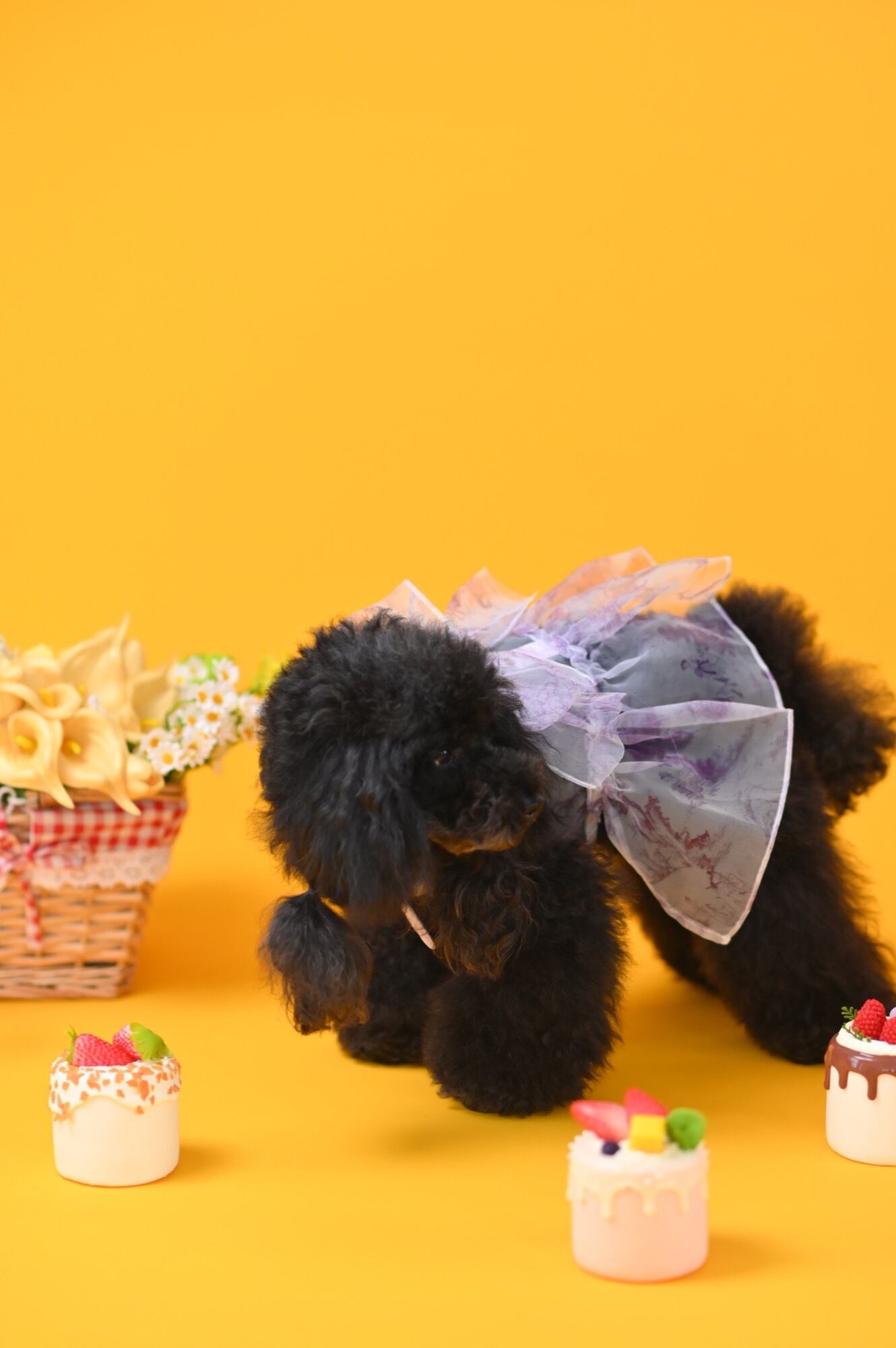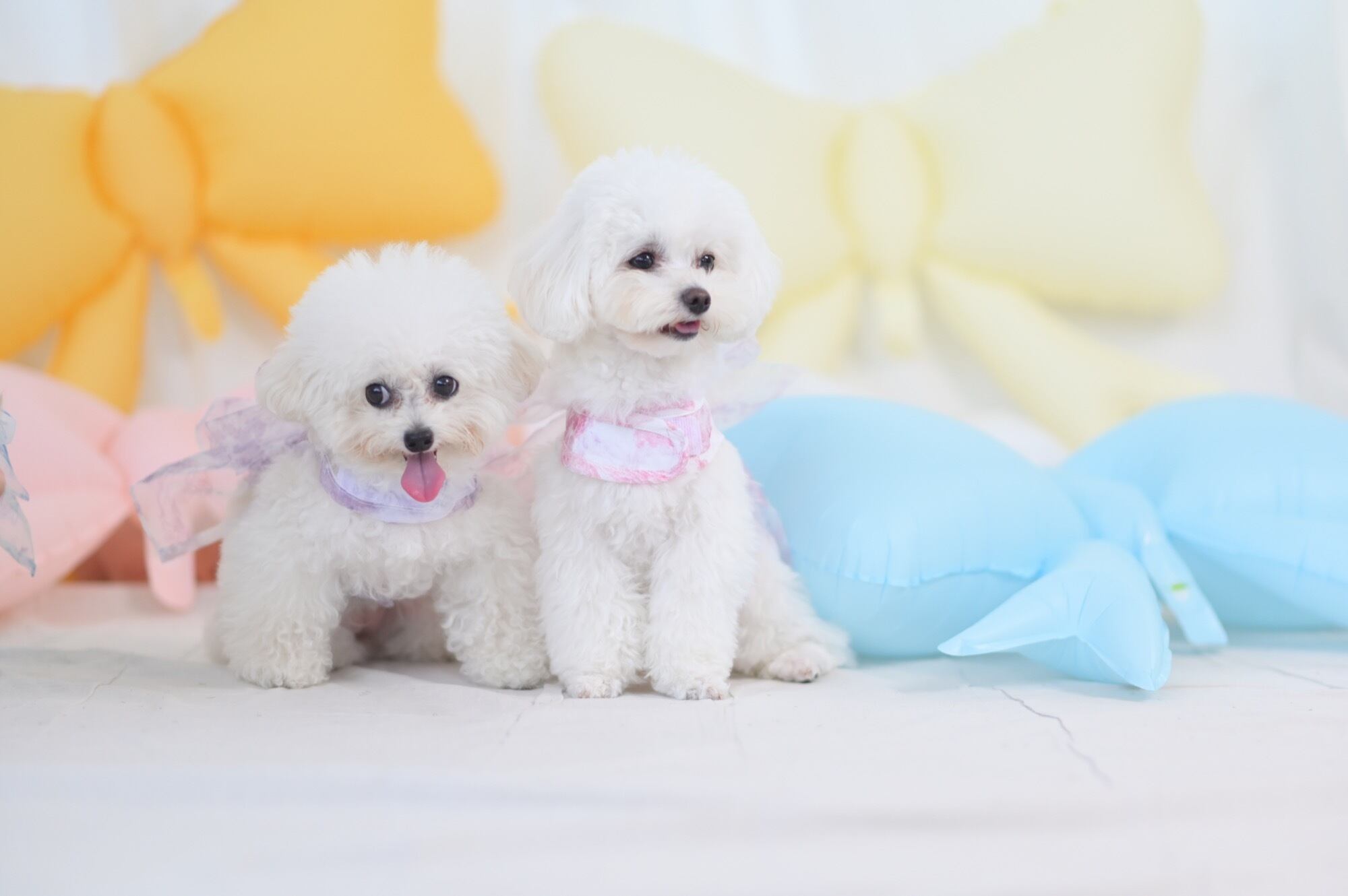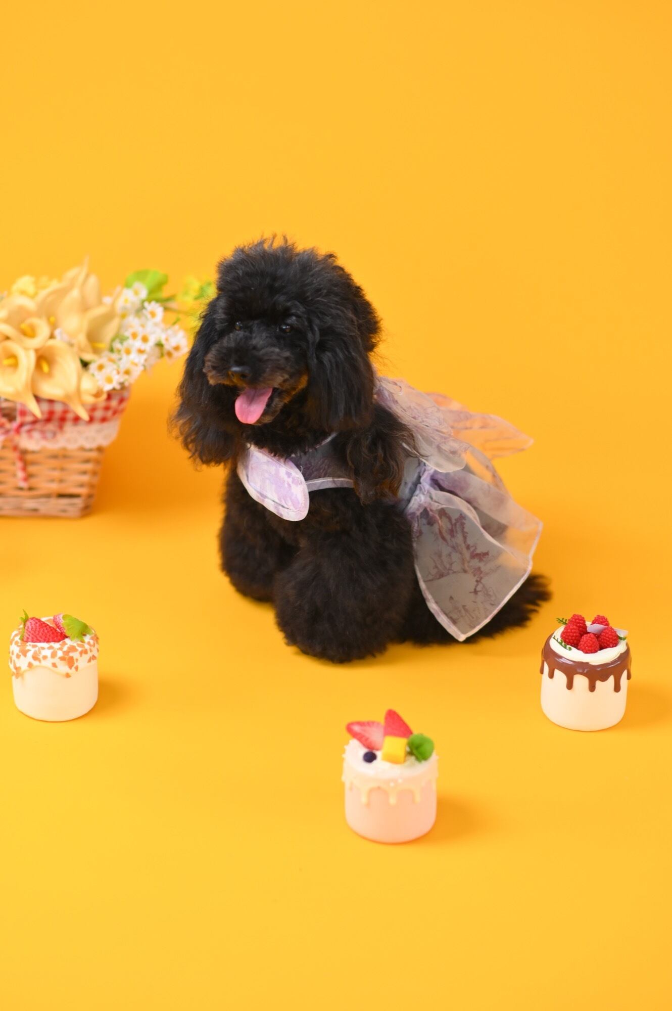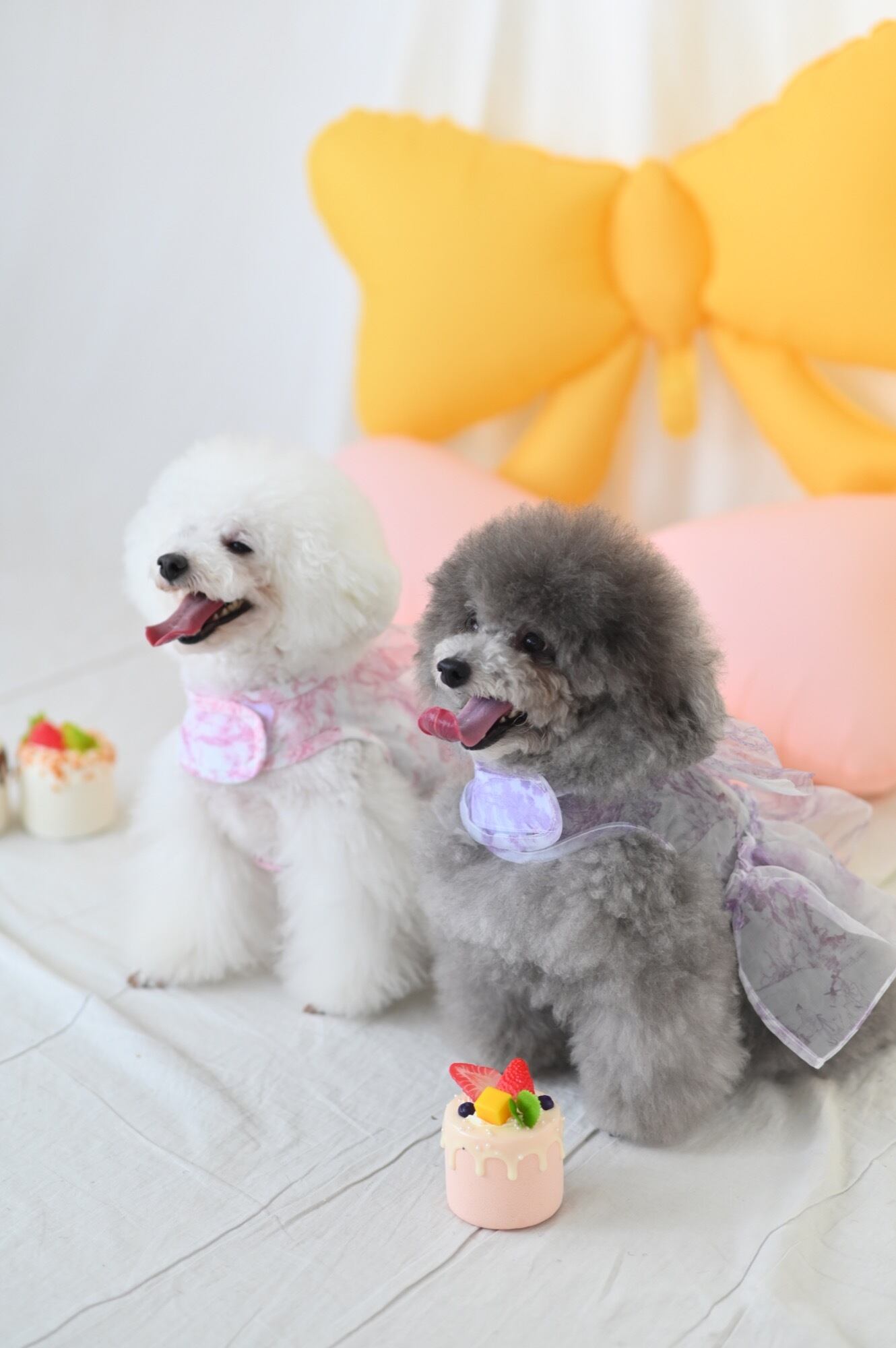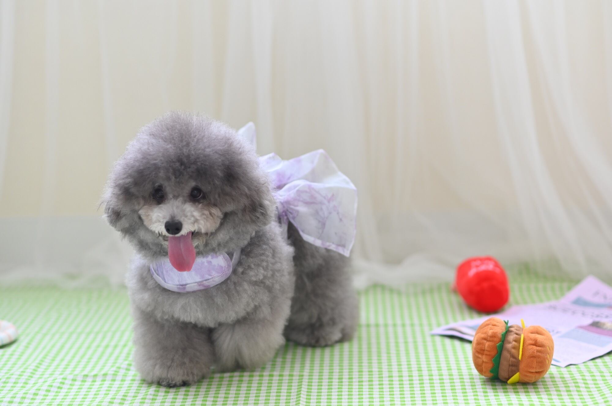 歩くたびに風に揺れてとびきり可愛らしく、特に上品なパープルカラーは気品を漂わせ、愛犬の魅力をより一層引き立てます。