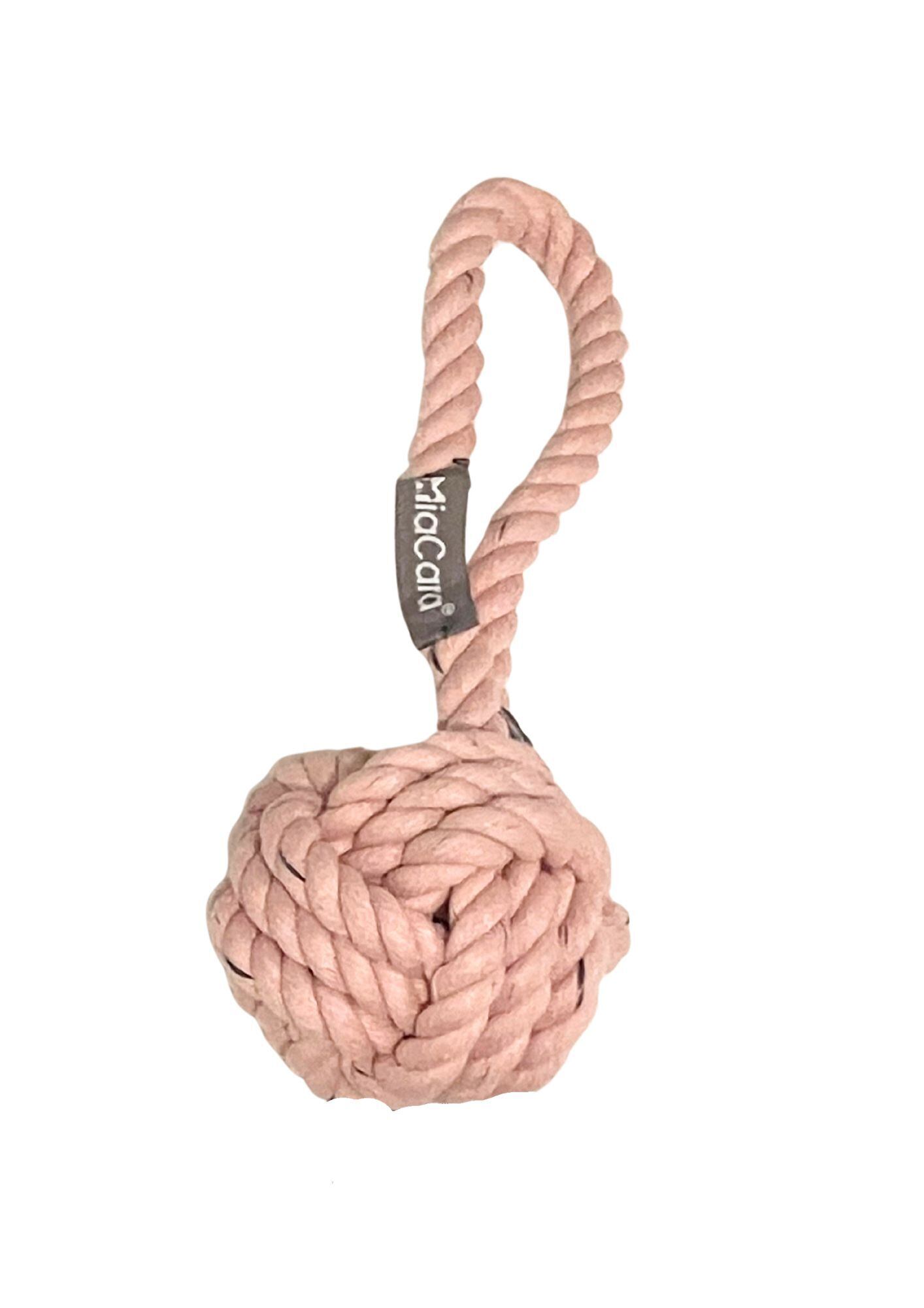 Nodo(ノード)ドッグトイは、頑丈なコットン素材で手編みされた編み込みボール型のおもちゃ。しっかり握れるループ付きで、投げたり引っ張ったりとさまざまな遊びに対応します。