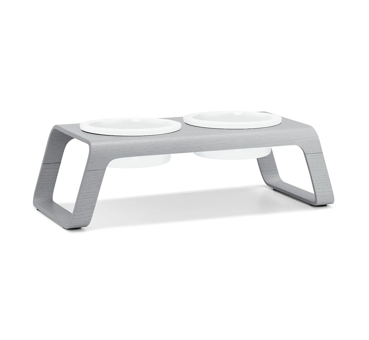 DESCO, DOG FEEDER, ASH GREY STAINED, PORCELAIN WHITE