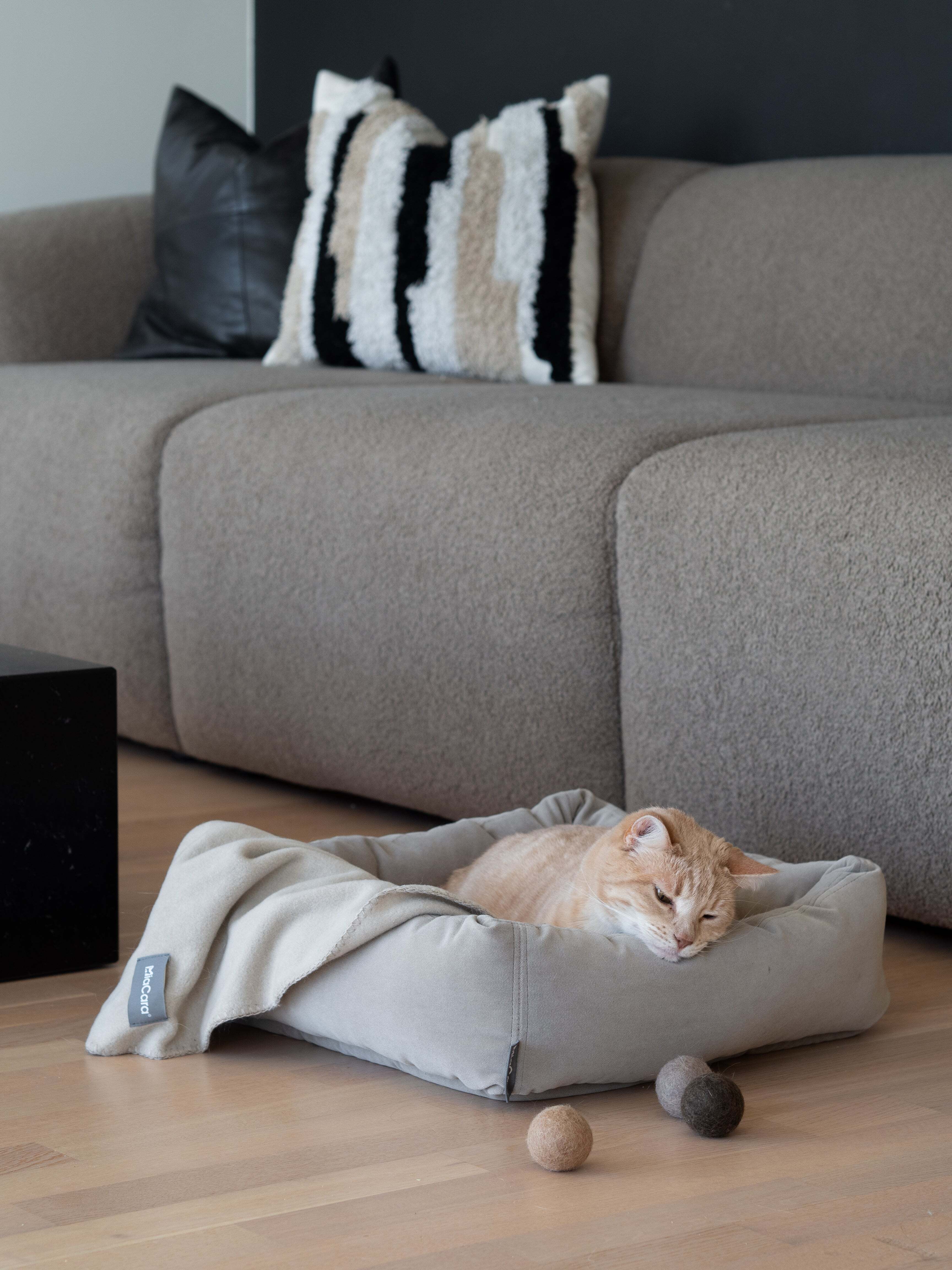 Unica(ウニカ)フリースブランケットは、家の中のどんな場所も愛猫のくつろぎスポットに変えてくれる優れものです。ベッドの上や爪とぎポールの上、ソファにさっと掛けるだけで、どこでもふんわり快適なスペースに。