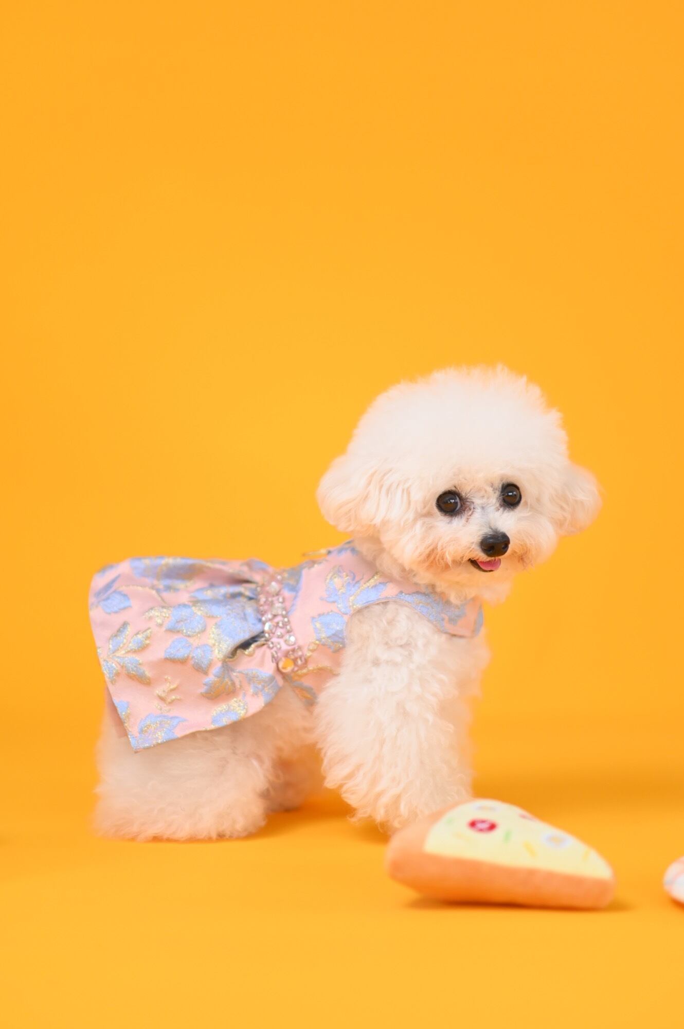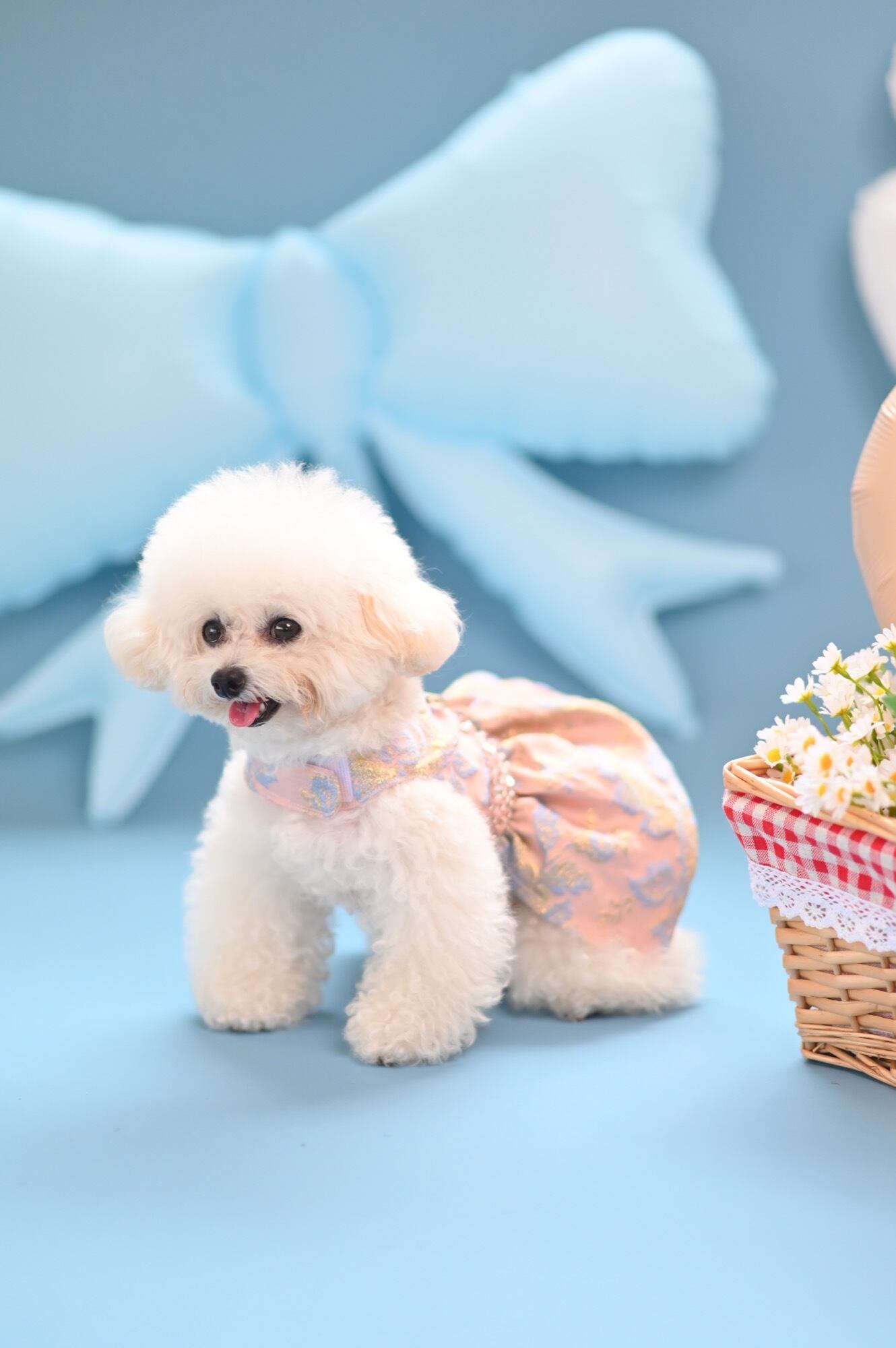 韓国発のラグジュアリードッグブランド。すべてのアイテムは韓国で一つひとつ丁寧にハンドメイドされており、受注生産ならではの特別感があります。繊細なデザインと厳選された上質素材にこだわり、まるでオートクチュールドレスのようにエレガントな犬服を展開。