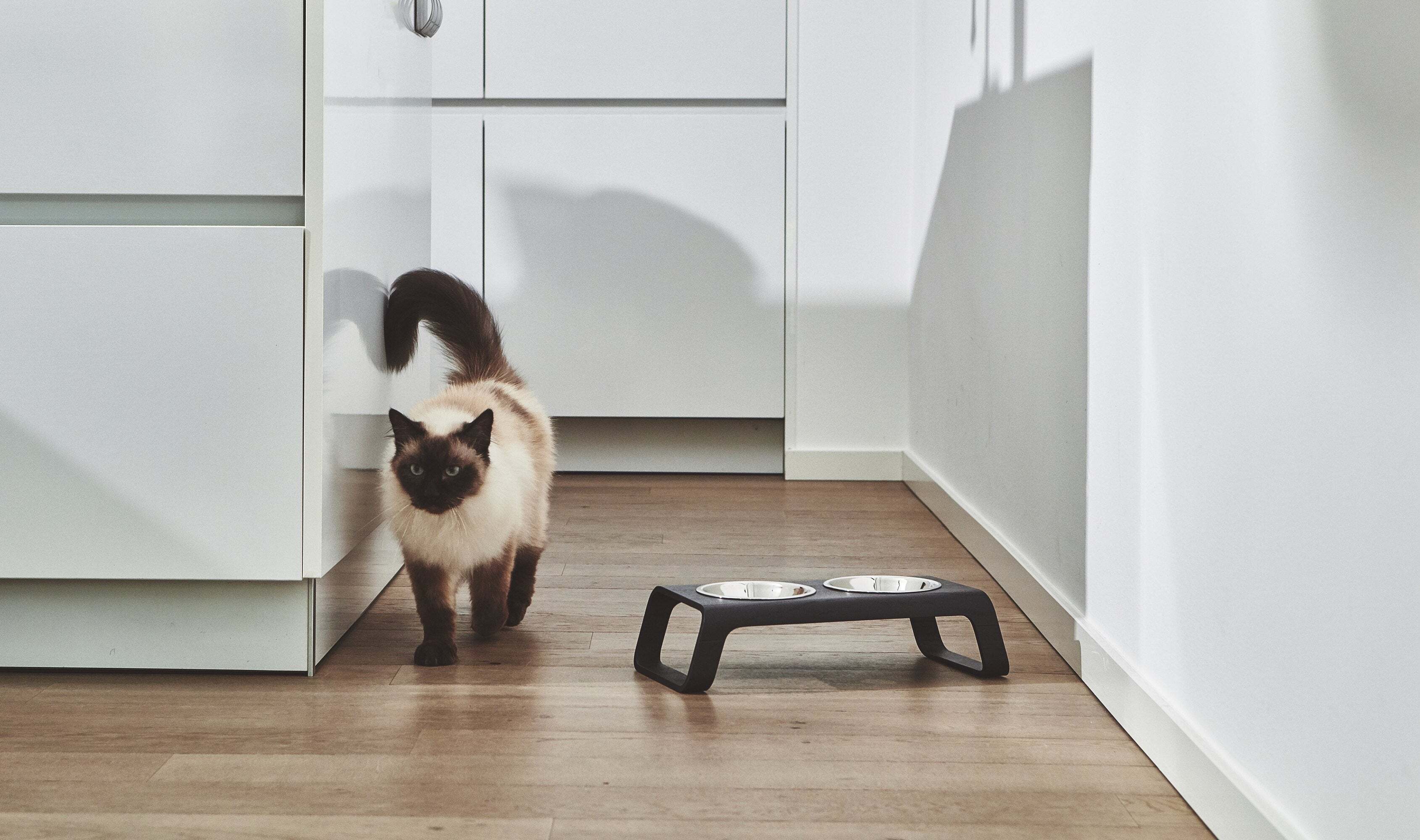 北欧スタイルをキッチンに添える、モダンなキャットフィーダー。