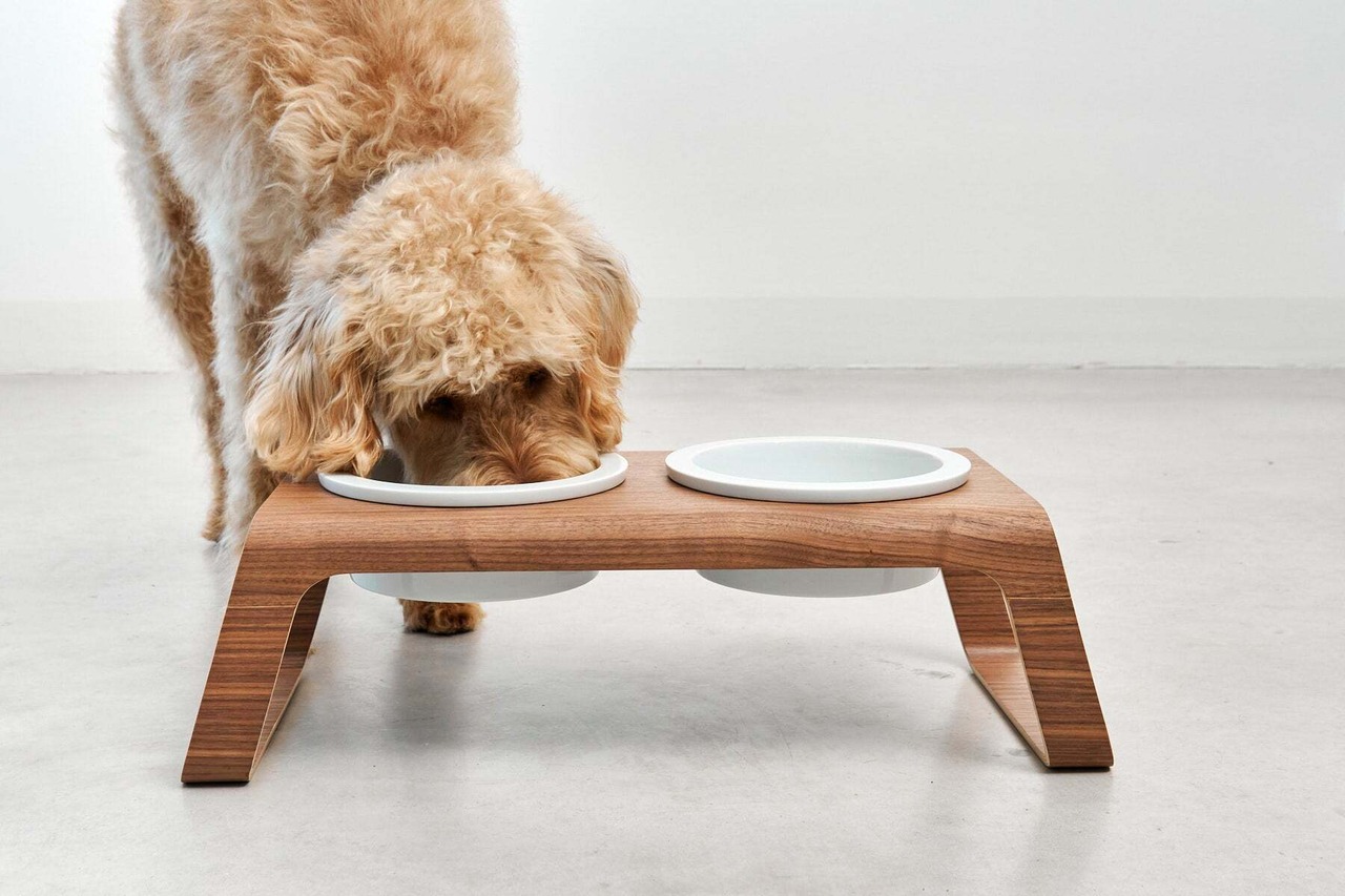 DESCO, DOG FEEDER, WALNUT, PORCELAIN WHITE M
