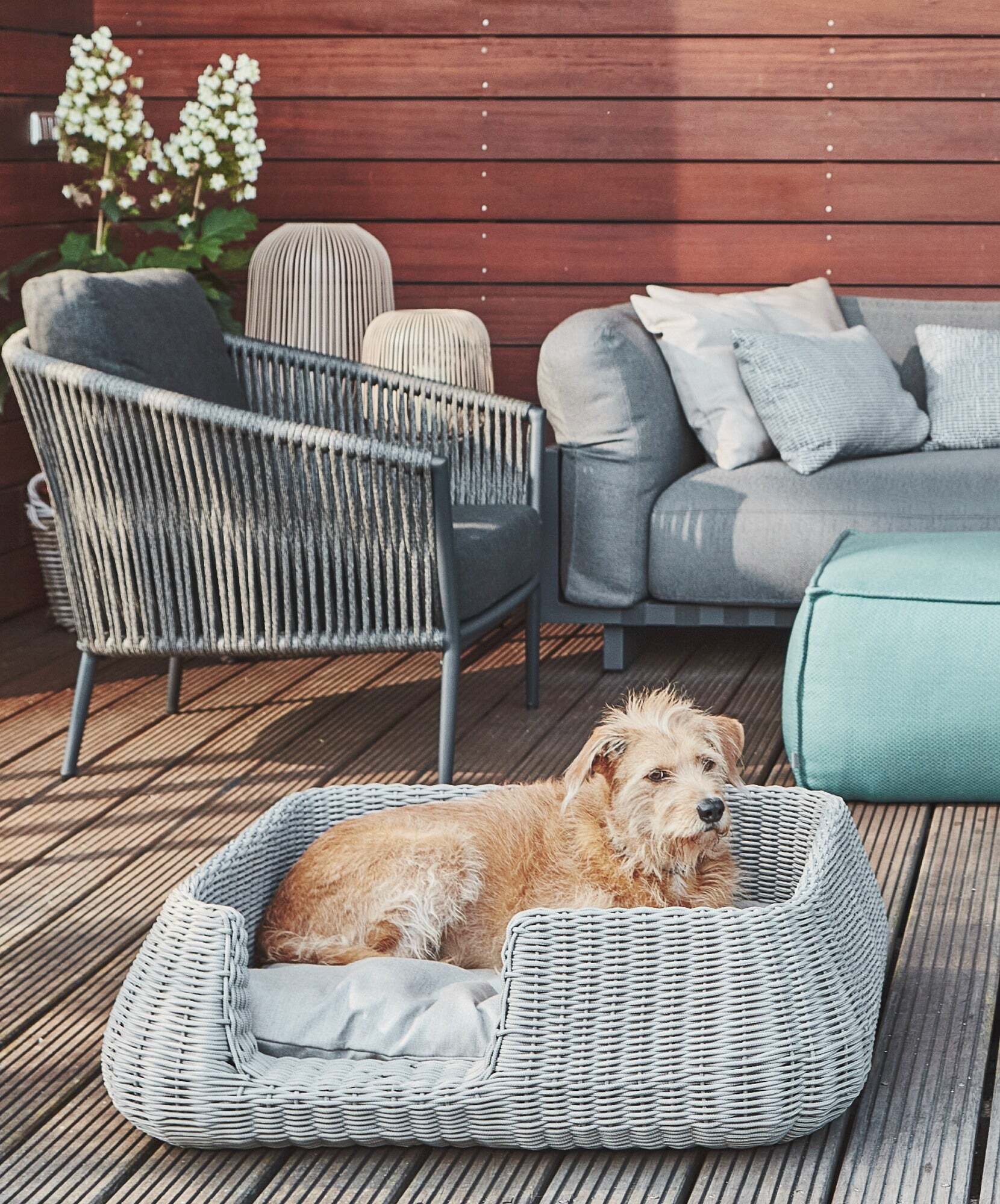屋内のリビングにも、屋外のテラスにも美しく調和する、ミオ ドッグバスケット。独自のデザインと機能性で、あなたの暮らしに洗練されたアクセントを加えます。