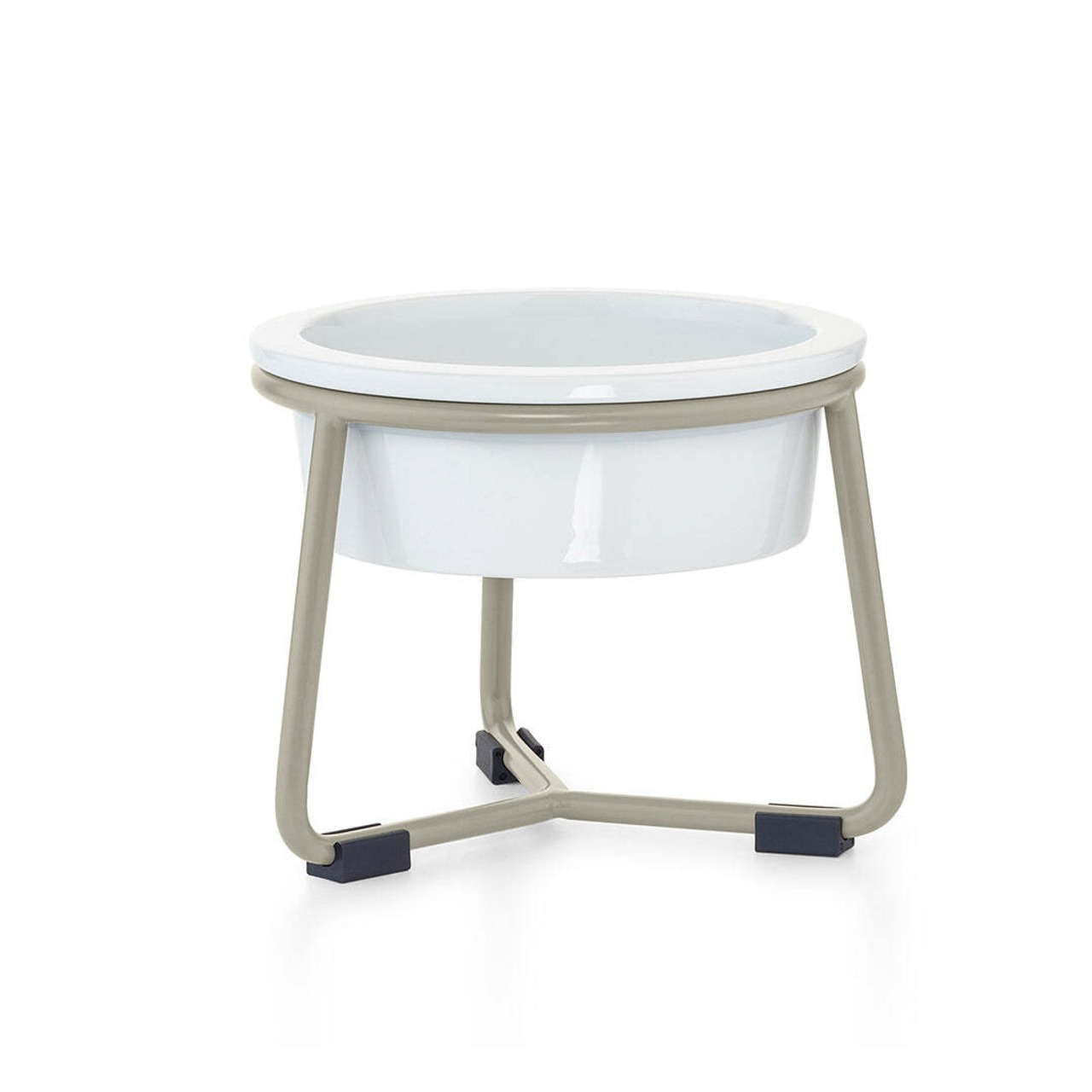 PRANZO, DOG FEEDER, POWDER-COATED GREIGE, PORCELAIN WHITE