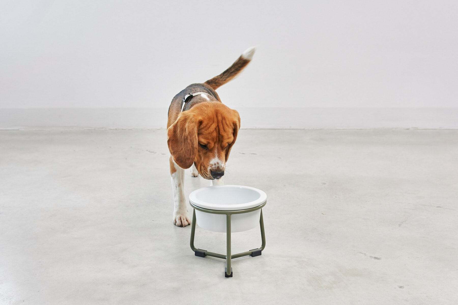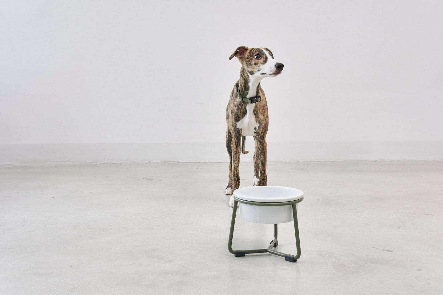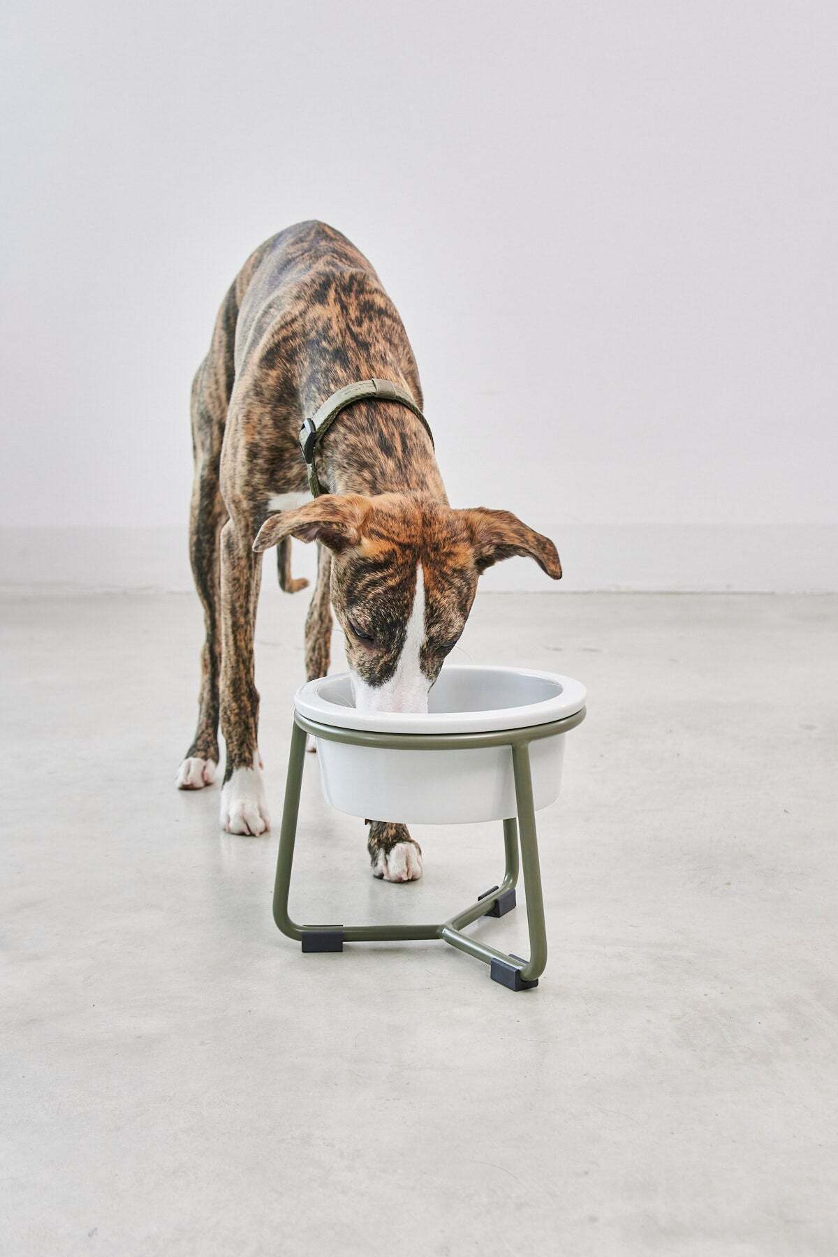 PRANZO, DOG FEEDER, POWDER-COATED GROLIVE, PORCELAIN WHITE M
