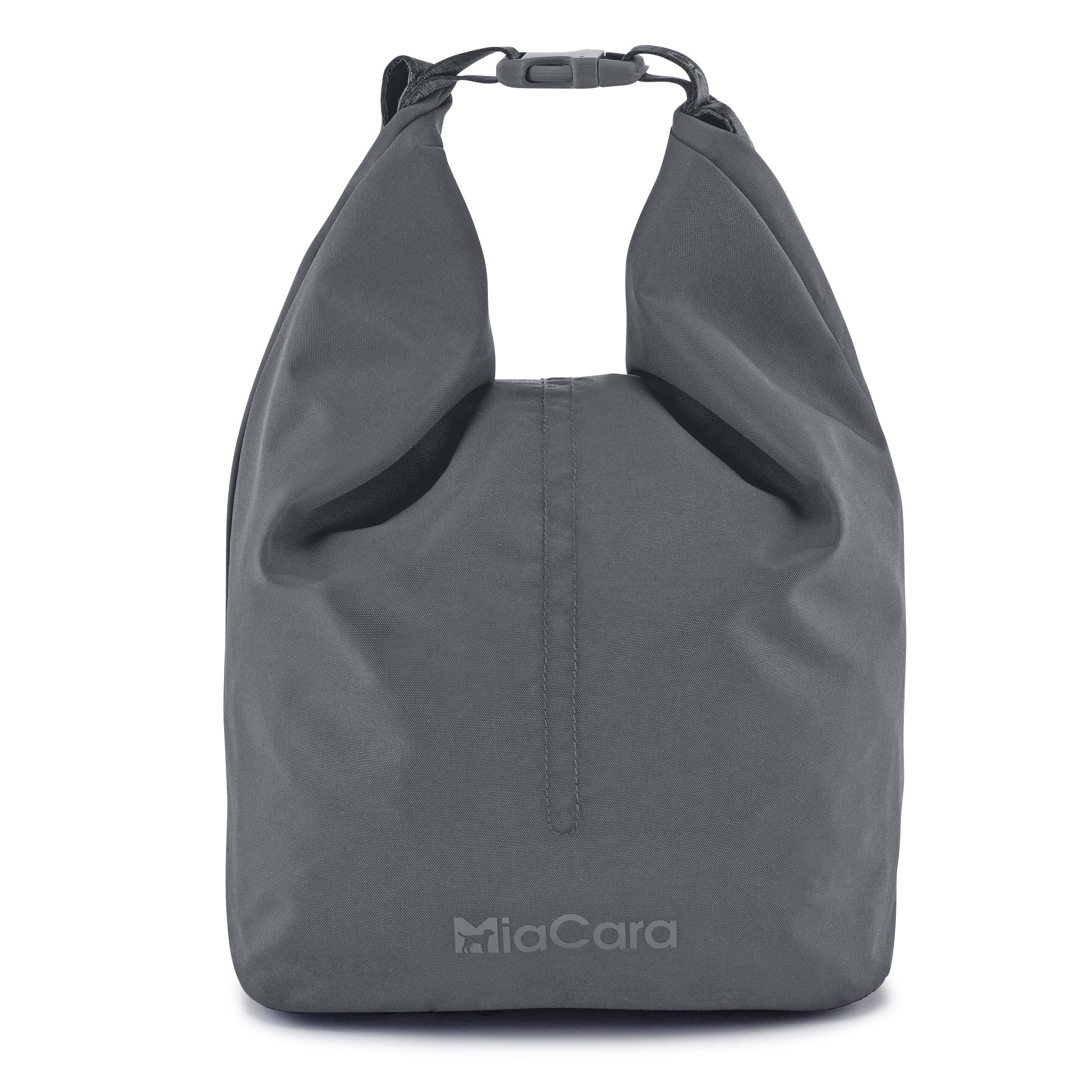 スマートなロールトップ開閉式で、中身の量に応じてサイズを調整可能。内部は食品対応ライニング付きで、フードを清潔かつ鮮度を保ったまま持ち運べます。