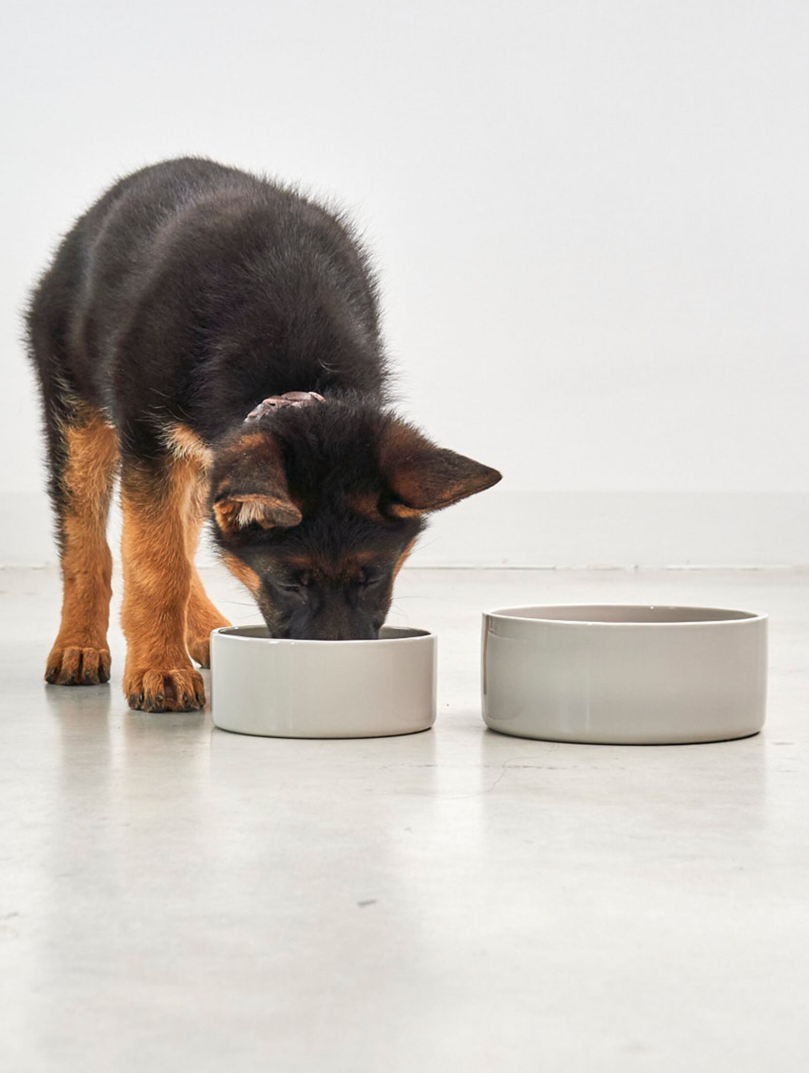 ドイツ製の高品質な磁器を使用し、丈夫で美しい北欧スタイルのフォルムが特徴。天然原料から作られているため、有害物質を含まず無毒・アレルギーにも配慮された安心設計(例:犬の顎ニキビなどにも対応)。