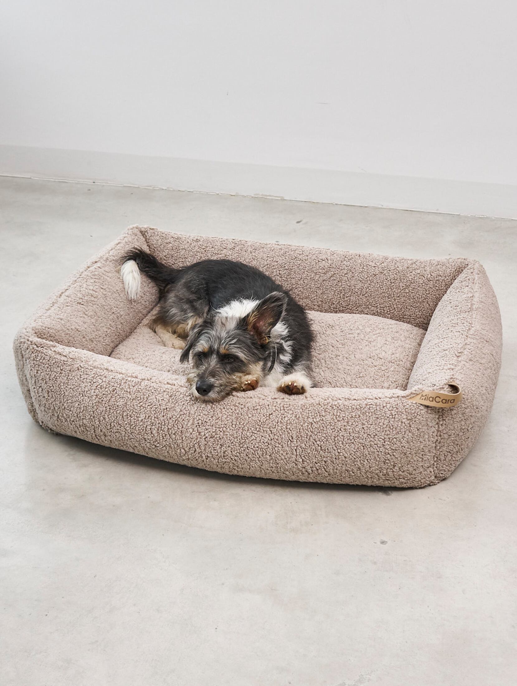 柔らかく高級感のあるブークレ生地で仕立てたSensoボックスベッドは、落ち着いた2色のカラー展開で、どんなインテリアにも調和するデザイン性の高いドッグベッドです。