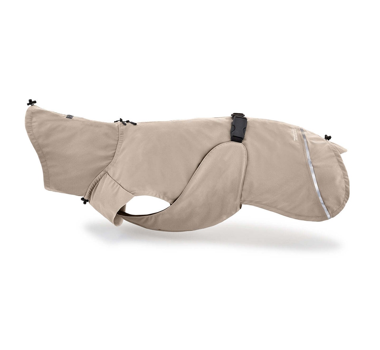 調整可能なベリーストラップと後ろ足用のゴムループがしっかりと体にフィットし、アクティブな動きでもズレを防止。また、しっぽの付け根・襟・首元のコードストッパー付きのゴムバンドにより、体型に合わせたきめ細やかなフィッティングが可能です。