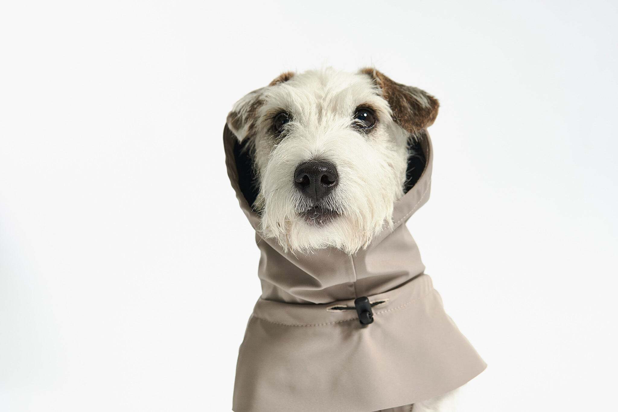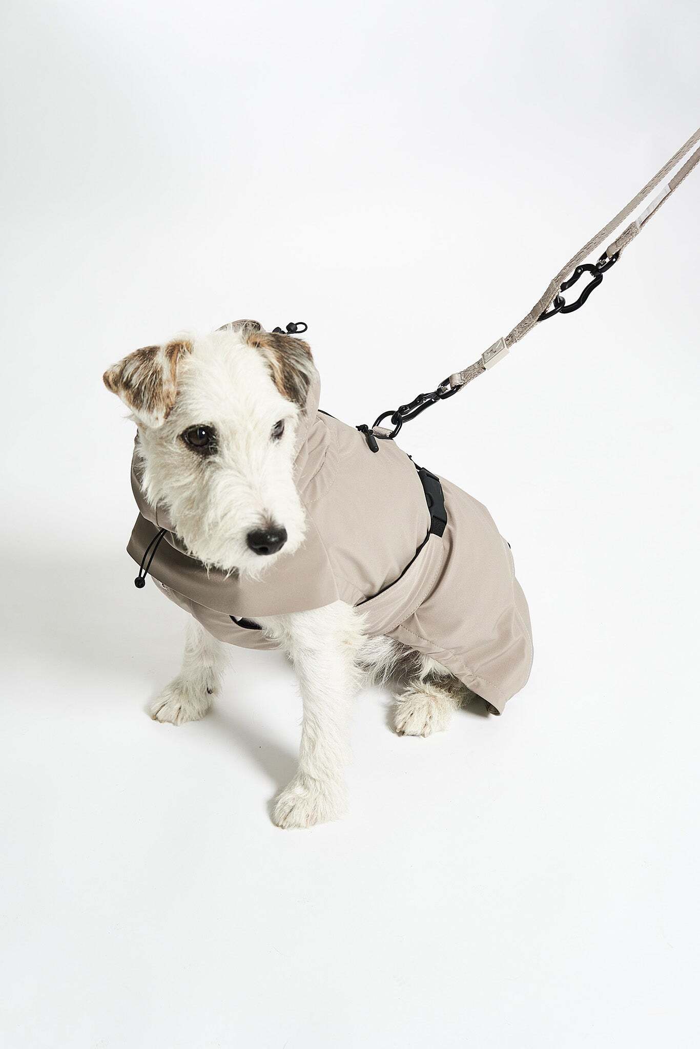 シックなサンドとコンクリートの2色展開で、都会的で洗練されたルックに。雨の日のマストアイテムとして、愛犬のワードローブにぜひ加えてください。