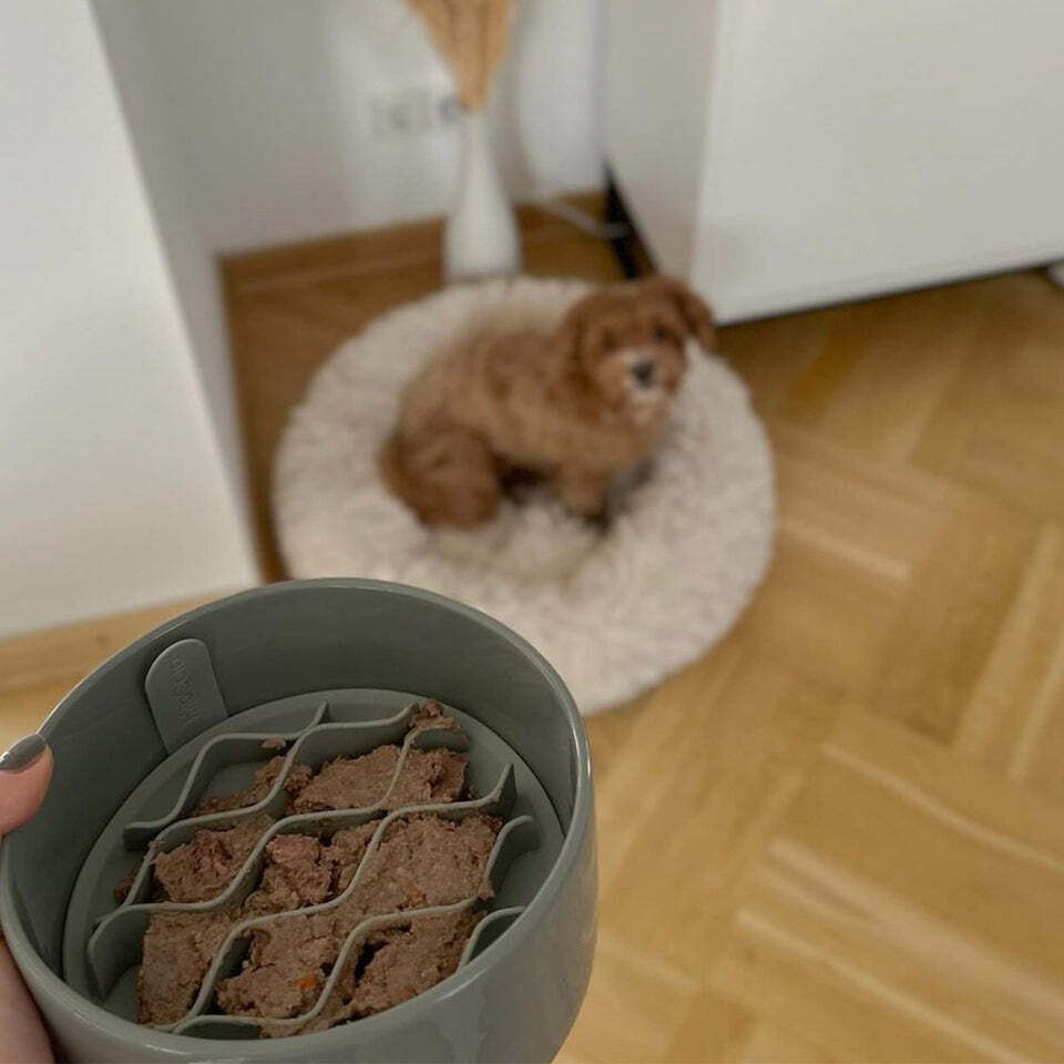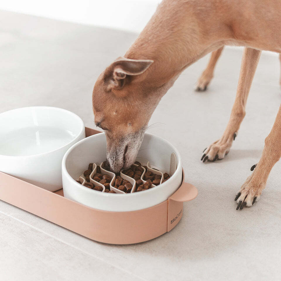 使い方はとても簡単。Lentoをドッグボウルに入れるだけで、特殊な弾力性のあるスラット構造がフードを分散し、ワンちゃんが少しずつ食べるように促します。