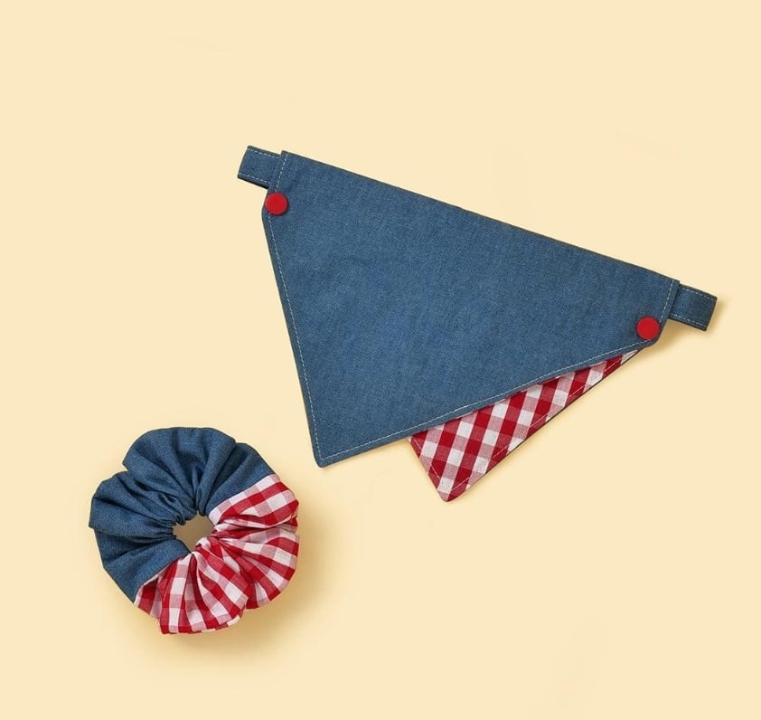 パークデイ デニム ギンガム プリント バンダナは、ピクニックや草の上でのんびり過ごす時間、元気いっぱいの午後をもっと特別にしてくれるハンドメイドのバンダナです。