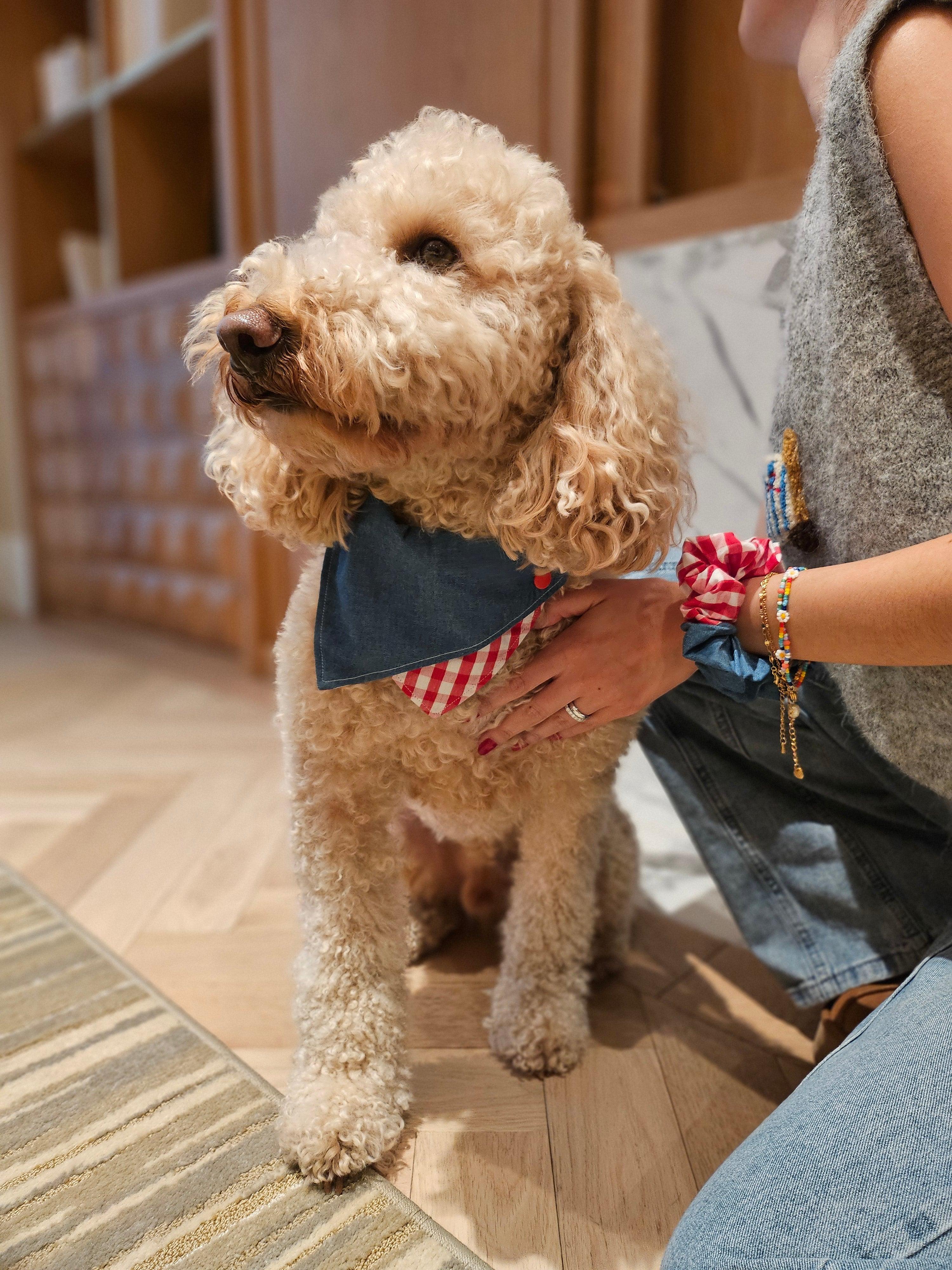 愛犬と一緒にお揃いコーデを楽しめる ハンドメイド バンダナ&シュシュ セット。