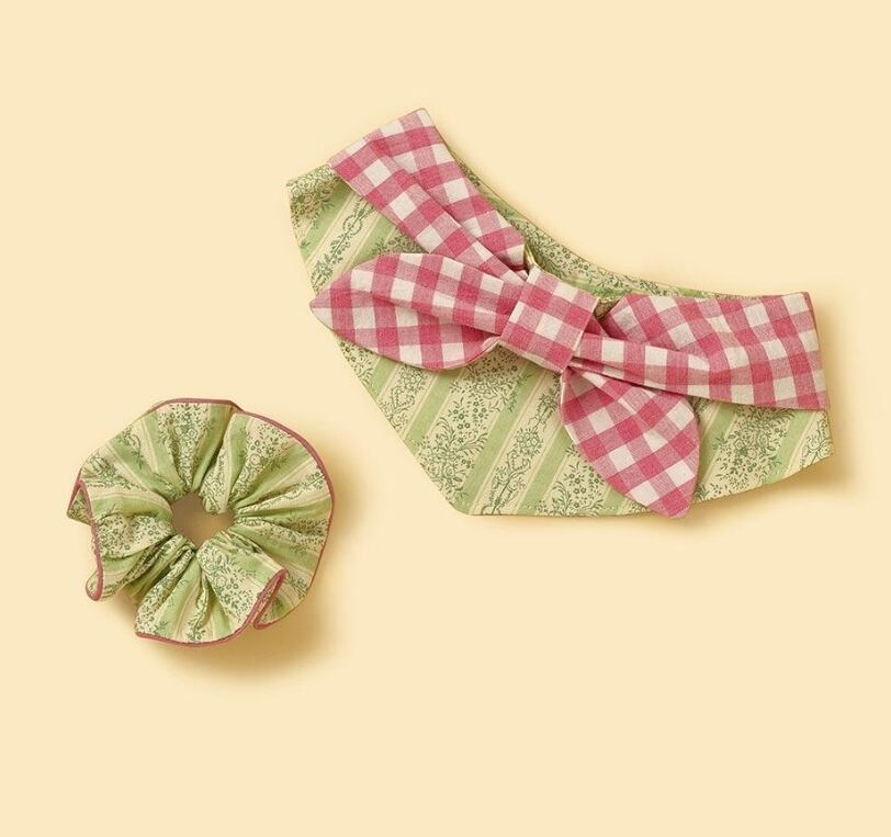 花柄とギンガムチェックを組み合わせた遊び心あるデザインで、やわらかな生地が愛犬のスタイルに優しい魅力をプラスしてくれます。
