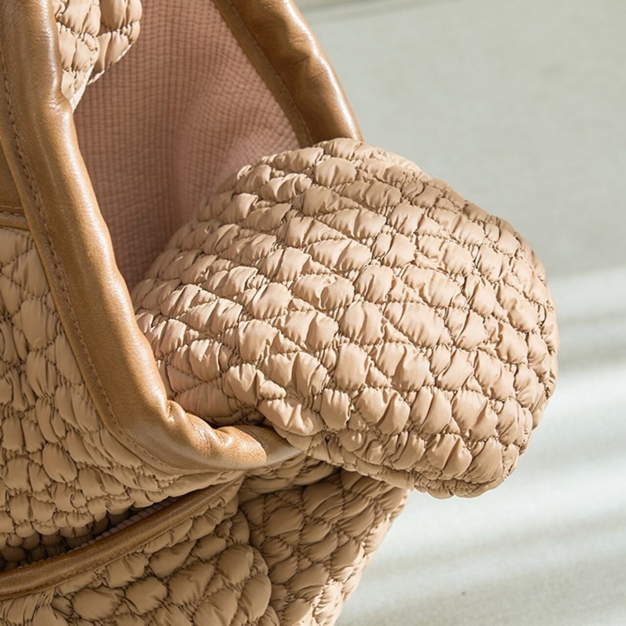 ショルダーストラップは取り外し可能で、長さの調整も自由自在。さらにレザー製ハンドル付きで、手持ちでも肩掛けでも快適に使えます。シンプルで上品なデザインは、どんなスタイルにも自然に馴染みます。