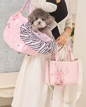 型崩れしにくいしっかりとした構造で、愛犬を安全・快適に運べるキャリーバッグです。内部には仕切りがあり、お散歩中に必要な小物をスッキリ整理して収納可能。