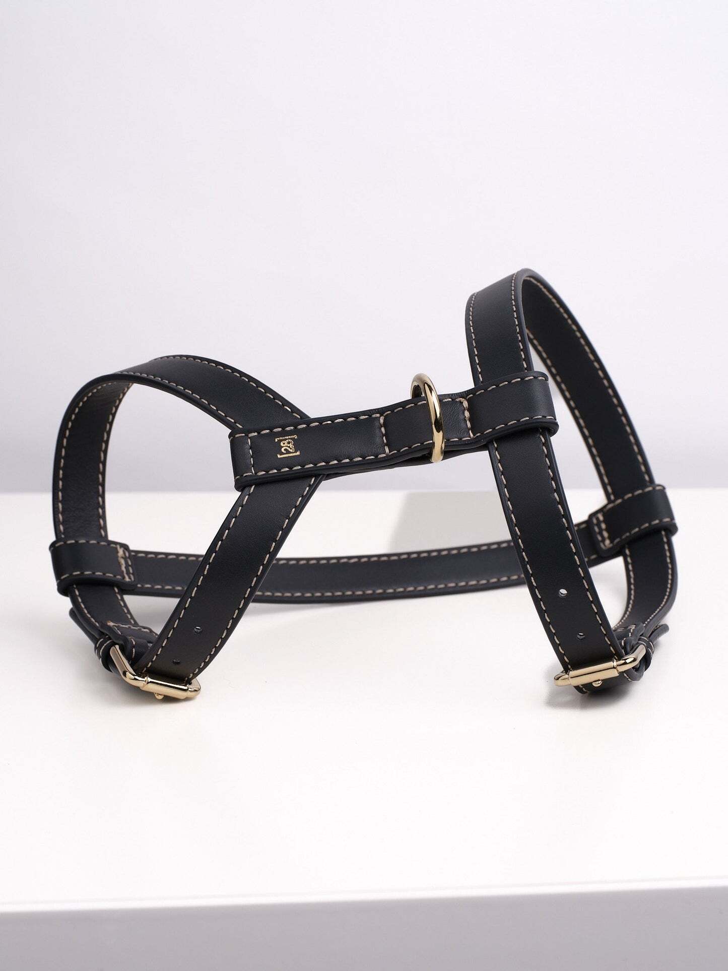 柔らかなナッパレザーを使用し、職人の手で丁寧に仕立てられた Gabriele ハーネス。上品なホワイトのコントラストステッチと輝くゴールドトーンの金具が、ラグジュアリーな存在感を放ちます。