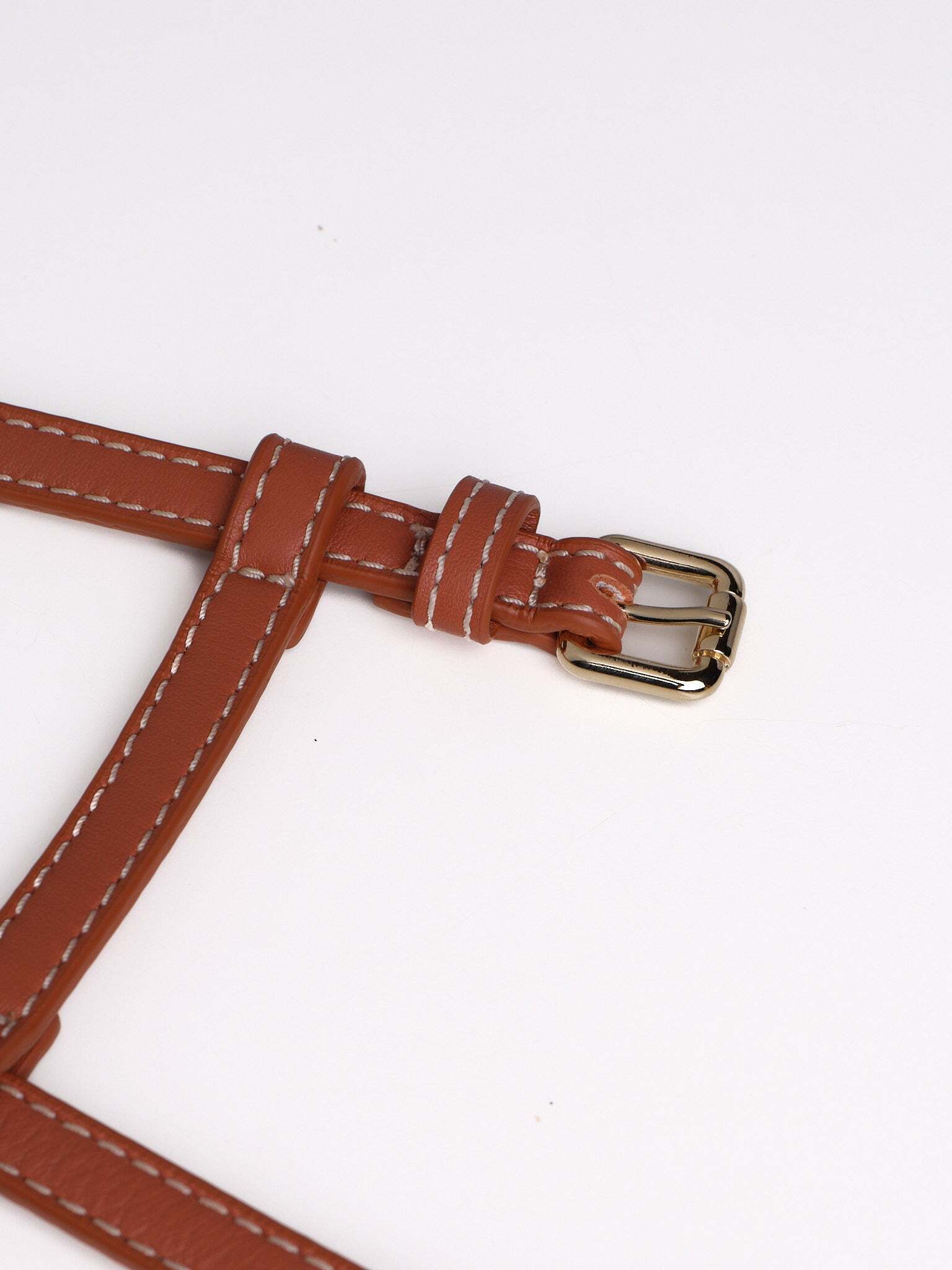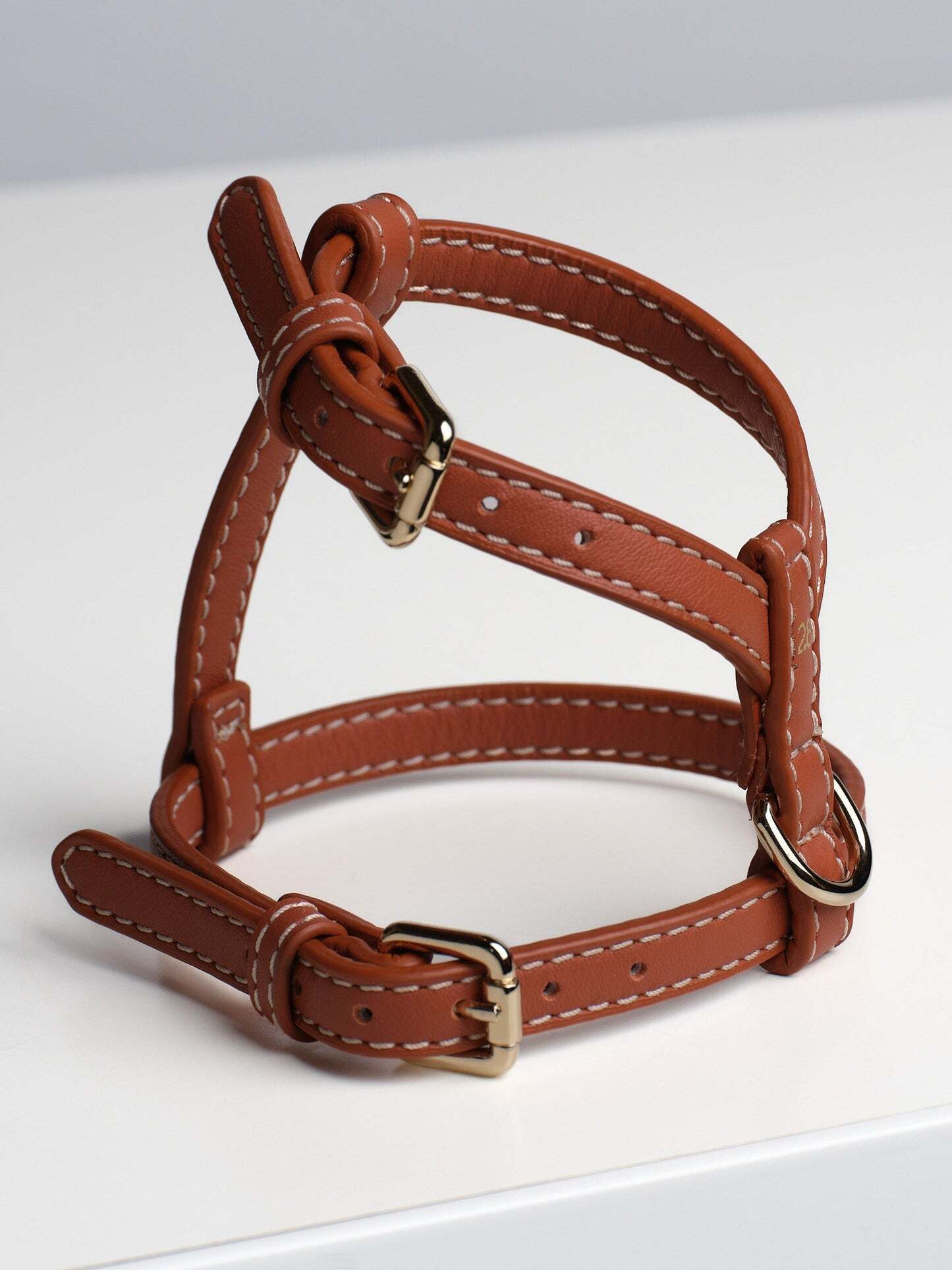 柔らかなナッパレザーを使用し、職人の手で丁寧に仕立てられた Gabriele ハーネス。上品なホワイトのコントラストステッチと輝くゴールドトーンの金具が、ラグジュアリーな存在感を放ちます。