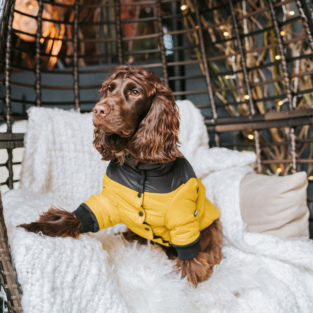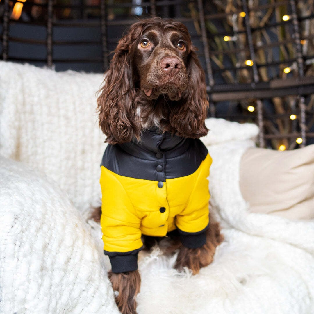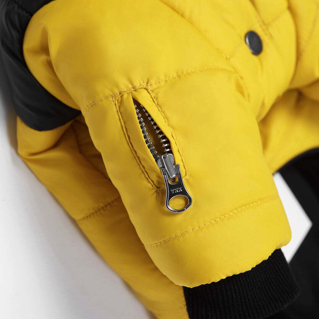 Contrast Button Up Puffer Ski Jacket -yellow & black