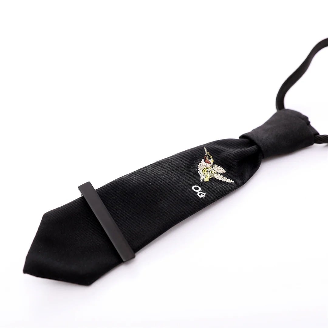 フロントには鳥の刺繍と新しい「OG」ロゴのイニシャルが施され、洗練されたアクセントになっています。きちんと感のある装いを演出でき、特別なシーンや記念撮影にもおすすめです。