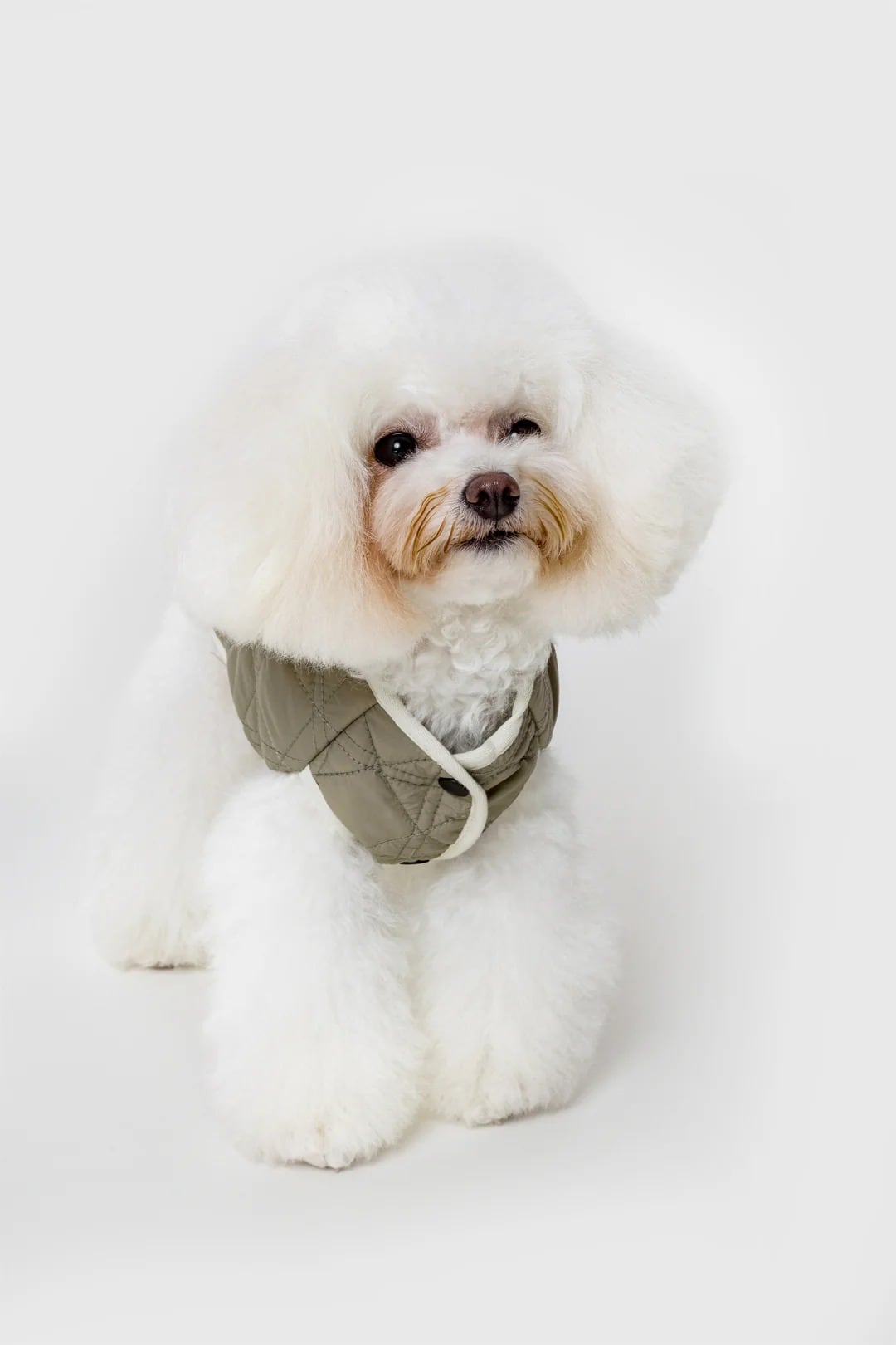 フロントはスナップボタン仕様で着脱しやすく、背中のカーブに沿った立体的なシルエットが愛犬の動きを妨げません。