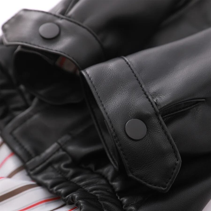 高級感のあるフェイクレザー素材を使用したタートルネックジャケット。