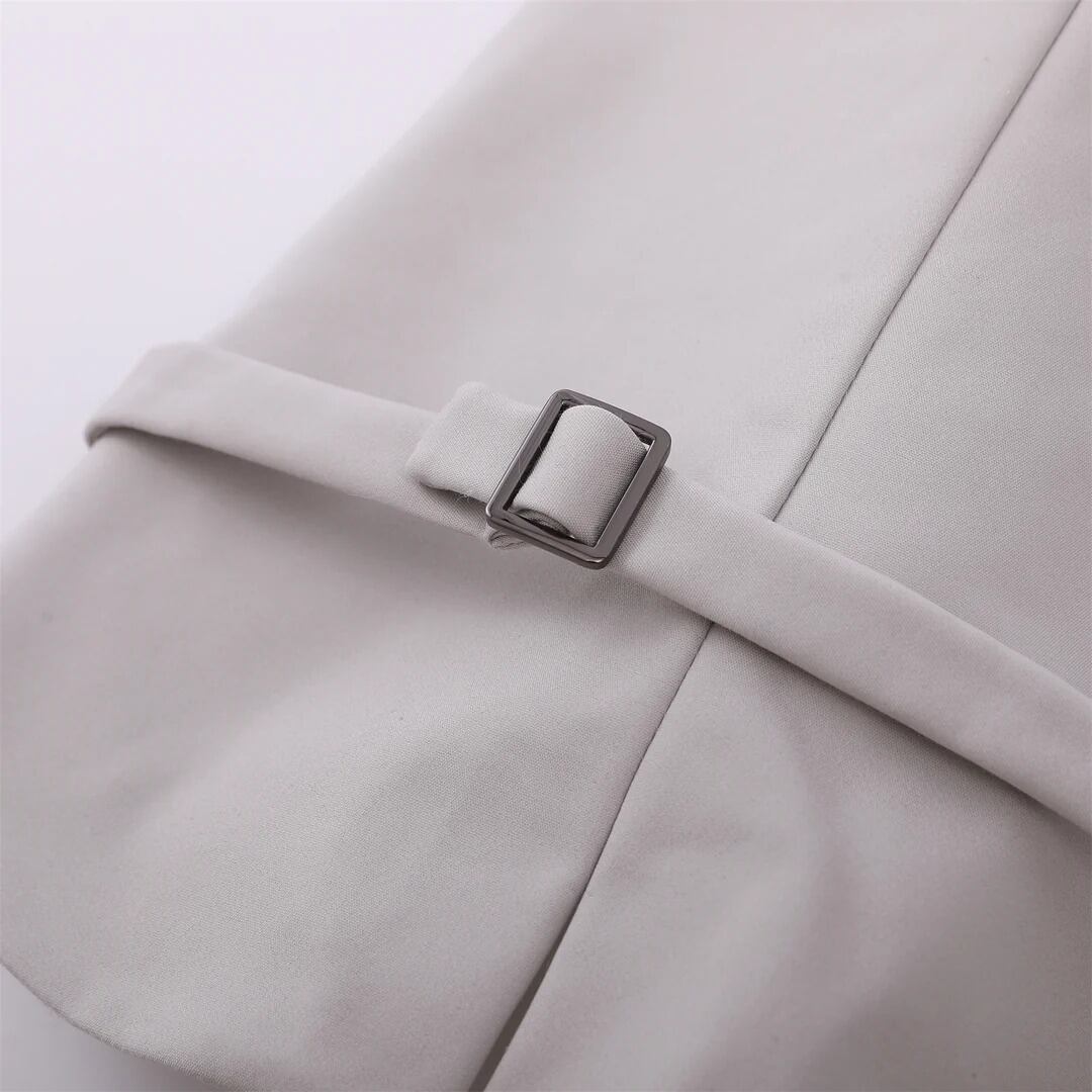 上品でクラシックな雰囲気のグレーのノースリーブ・ウエストコート。