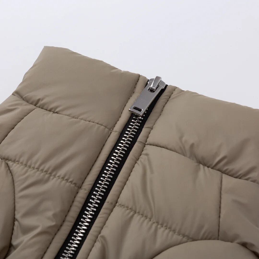 立体的なキルティングが体にフィットし、動きやすさと暖かさを両立した一着です。