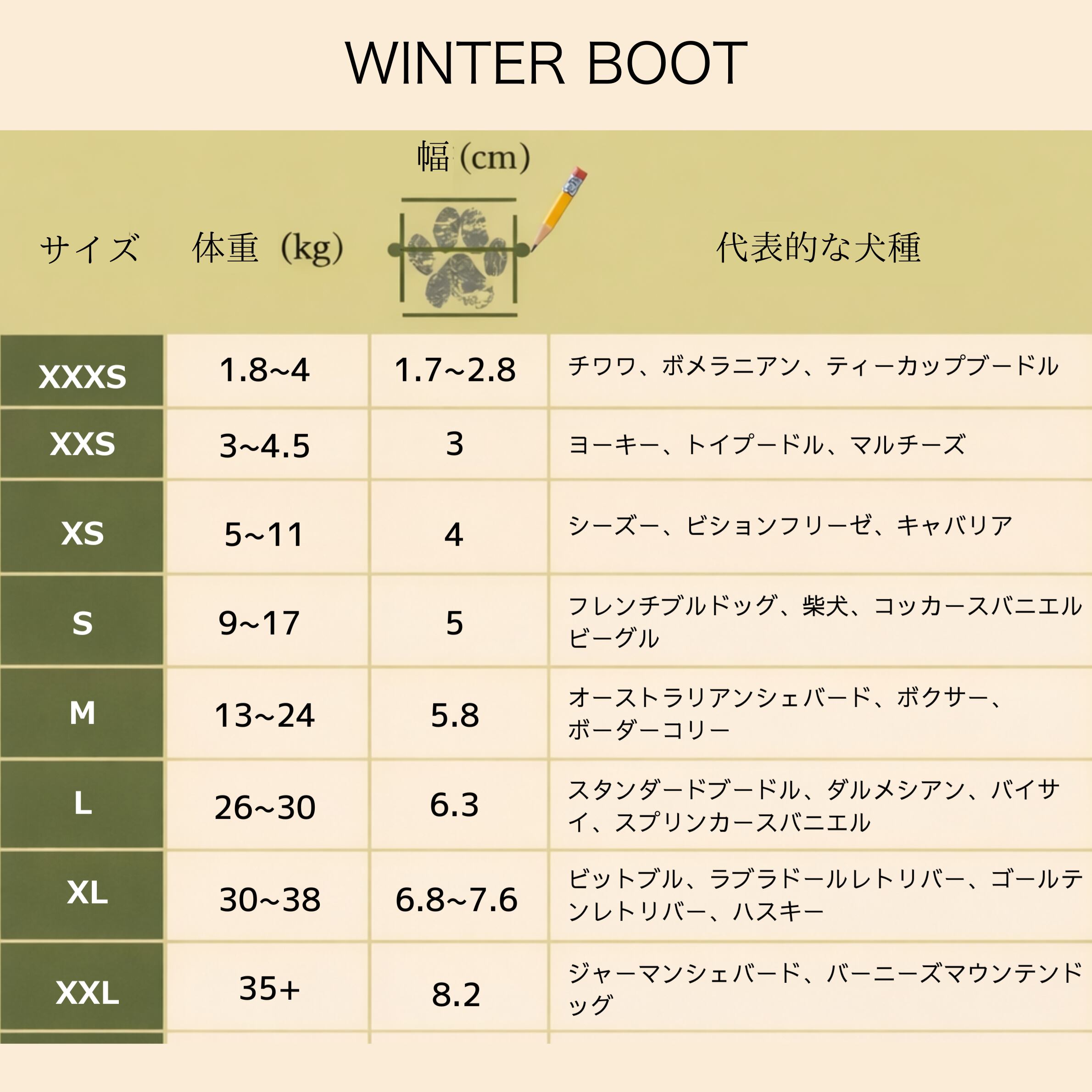 ※愛犬の前足・後ろ足それぞれの横幅を測定してください。必ず一番長い爪まで含めて計測します。