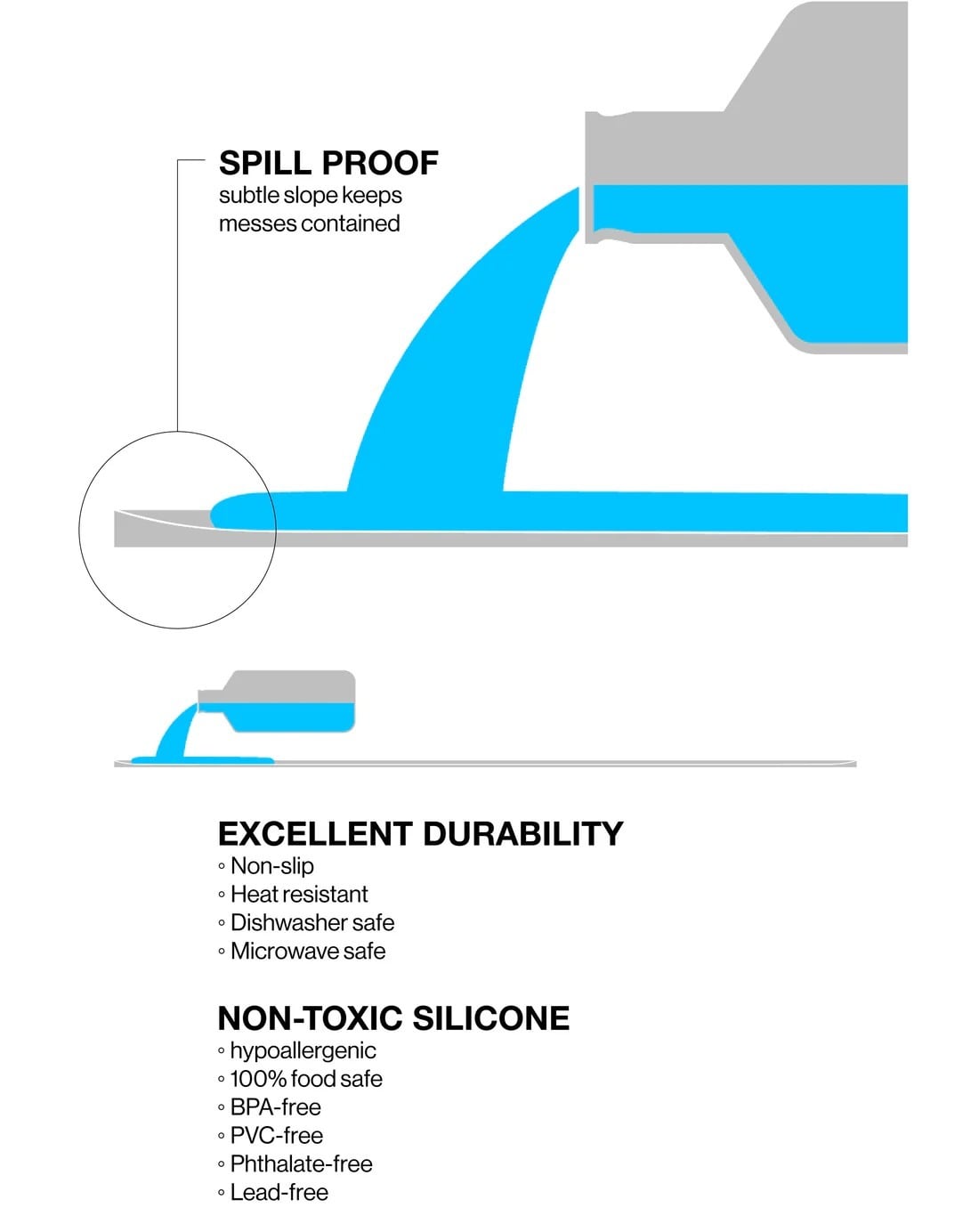 控えめでありながら大胆に機能的なMOGOトレイは、2つの現代的な色合いで提供され、2つのMOGOボウルを収容できるサイズの表面積を持っています。MOGOトレイは耐久性があり、掃除が簡単なシリコン製で、最大の安定性を提供します。目に見えないグラデーションデザインはこぼれを抑え、床を清潔に保ち、あなたの小さな散らかし屋にとって安全です。