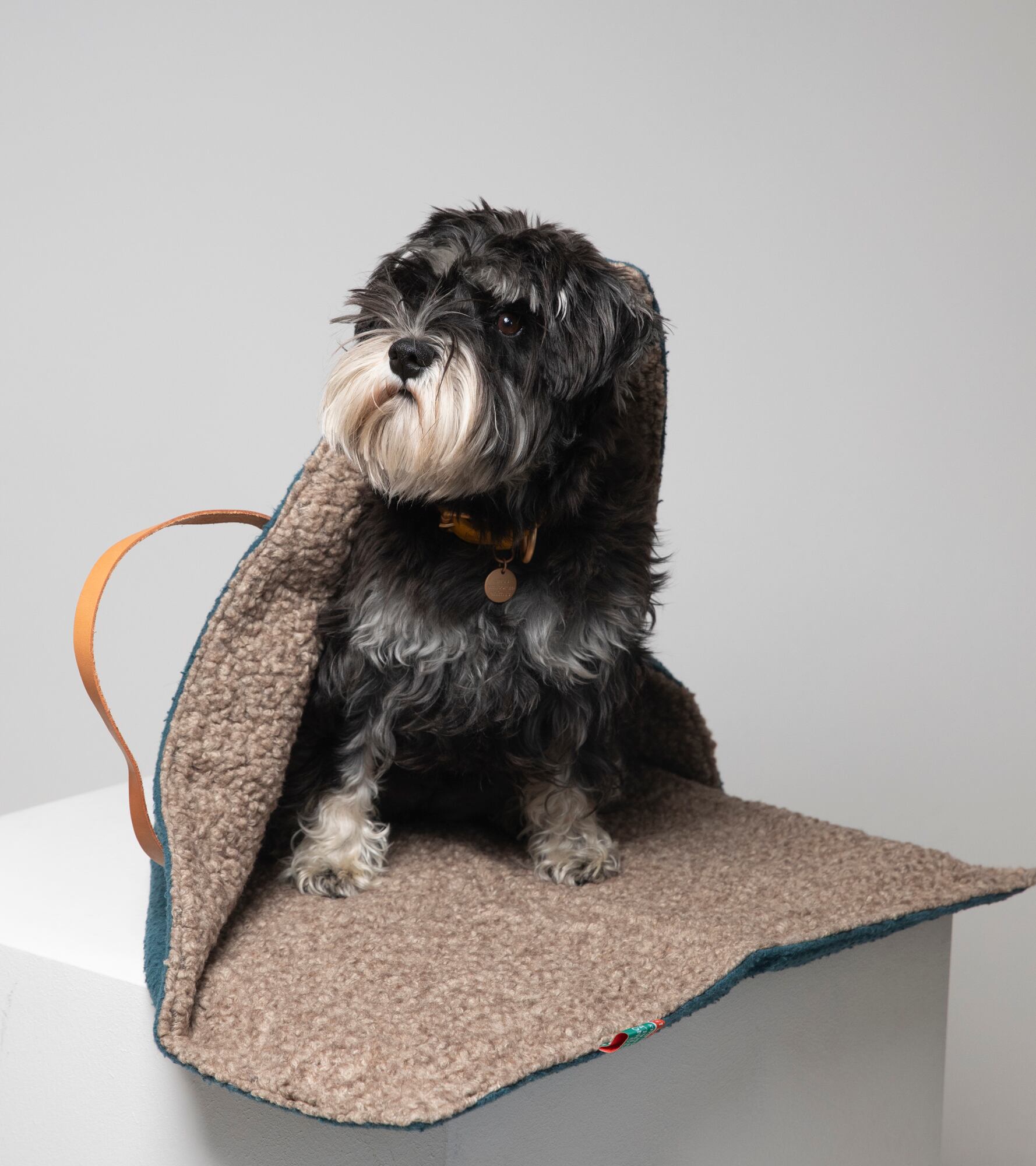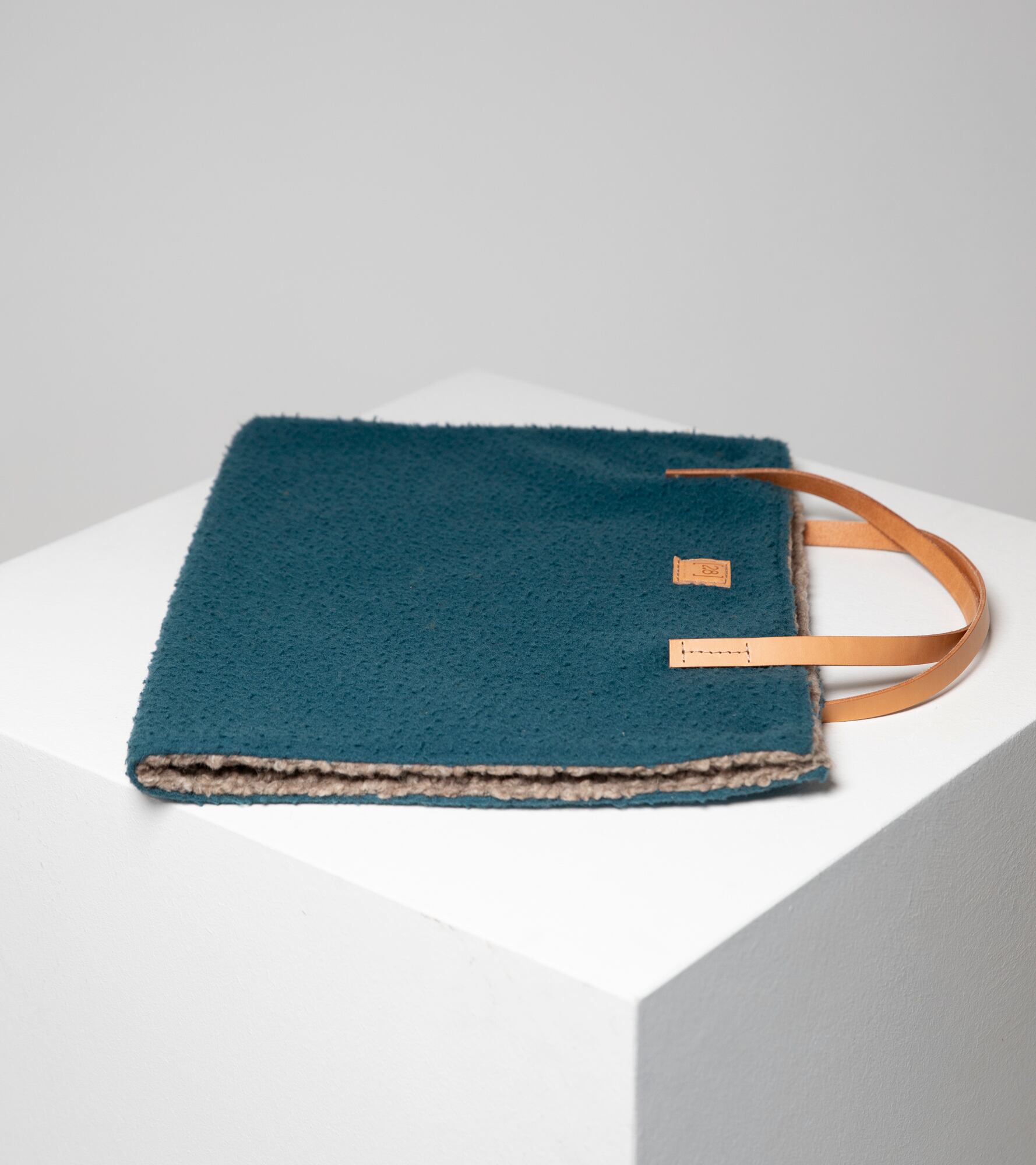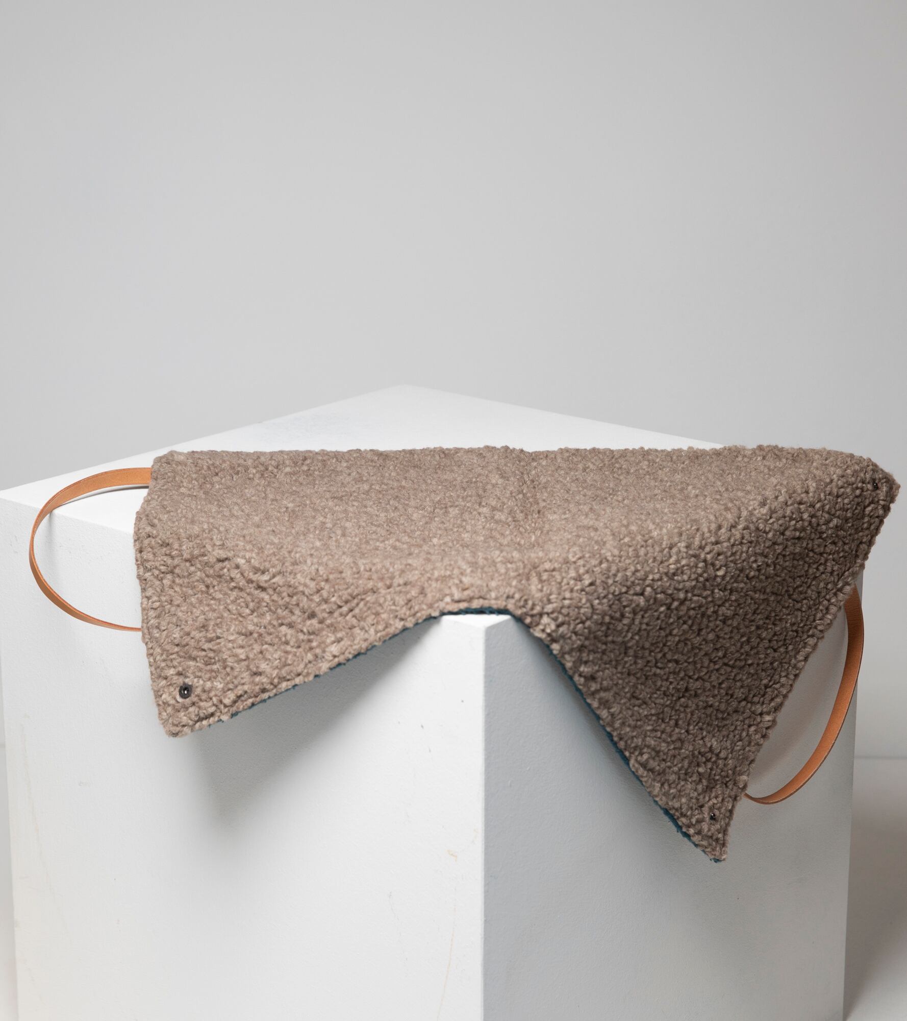 ■内側は柔らかいブークレウールで本革の持ち手とロゴ付き