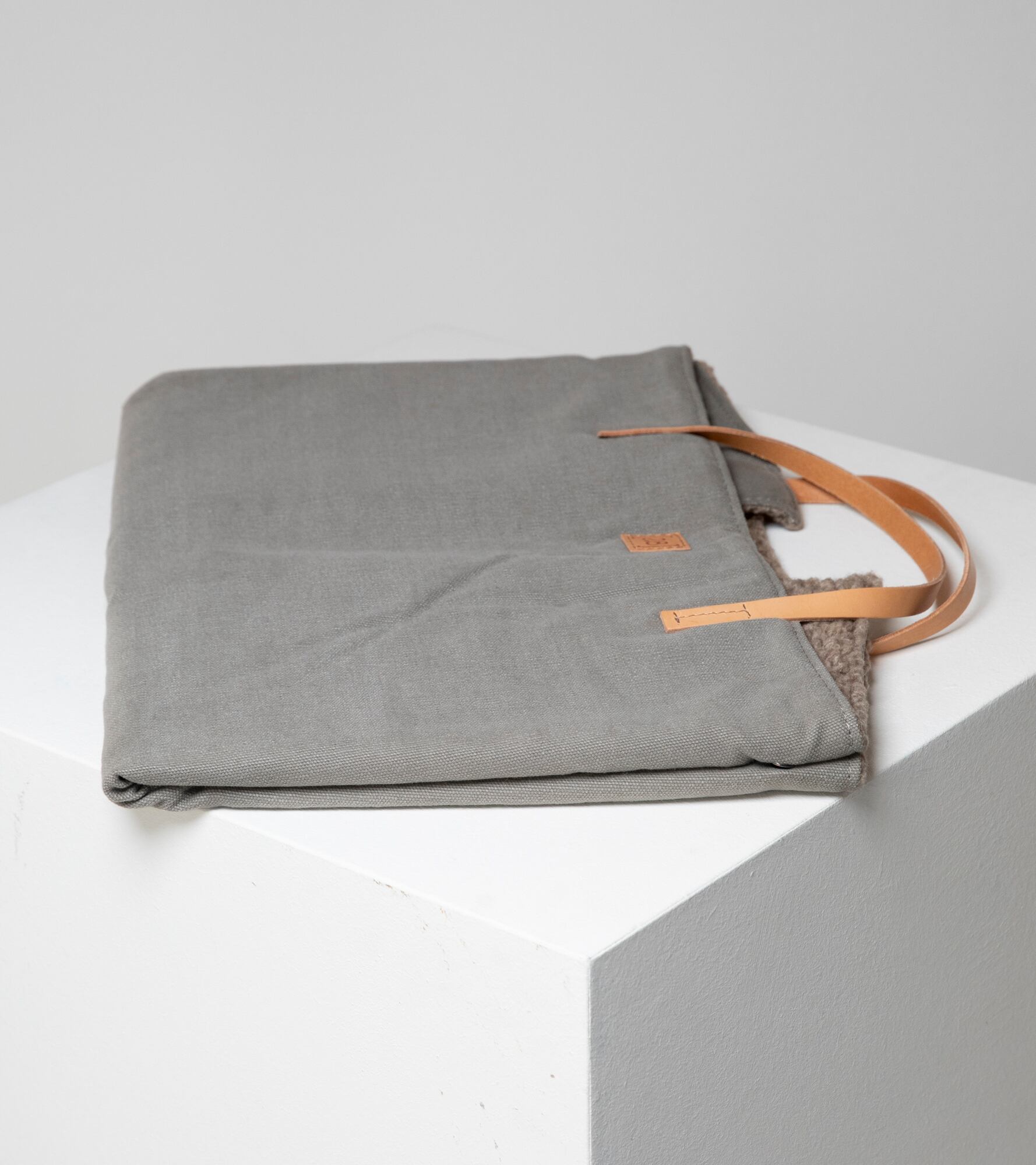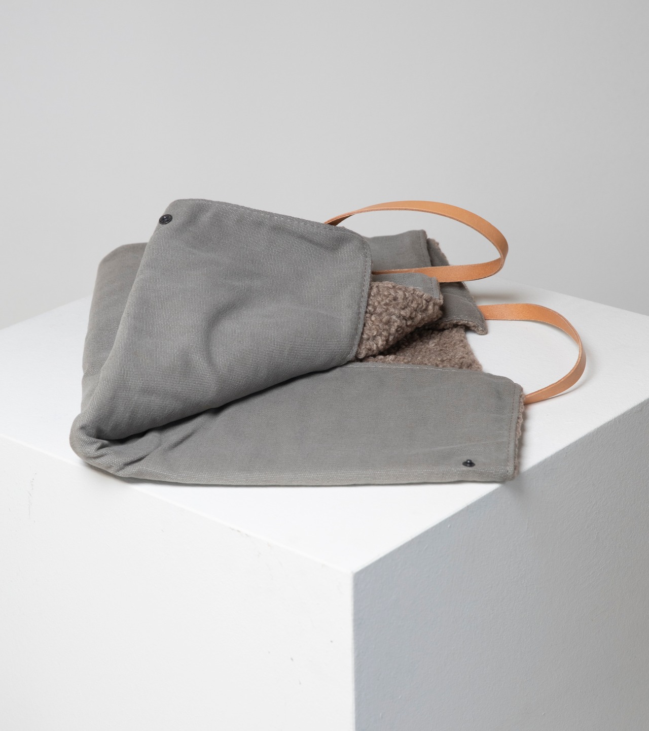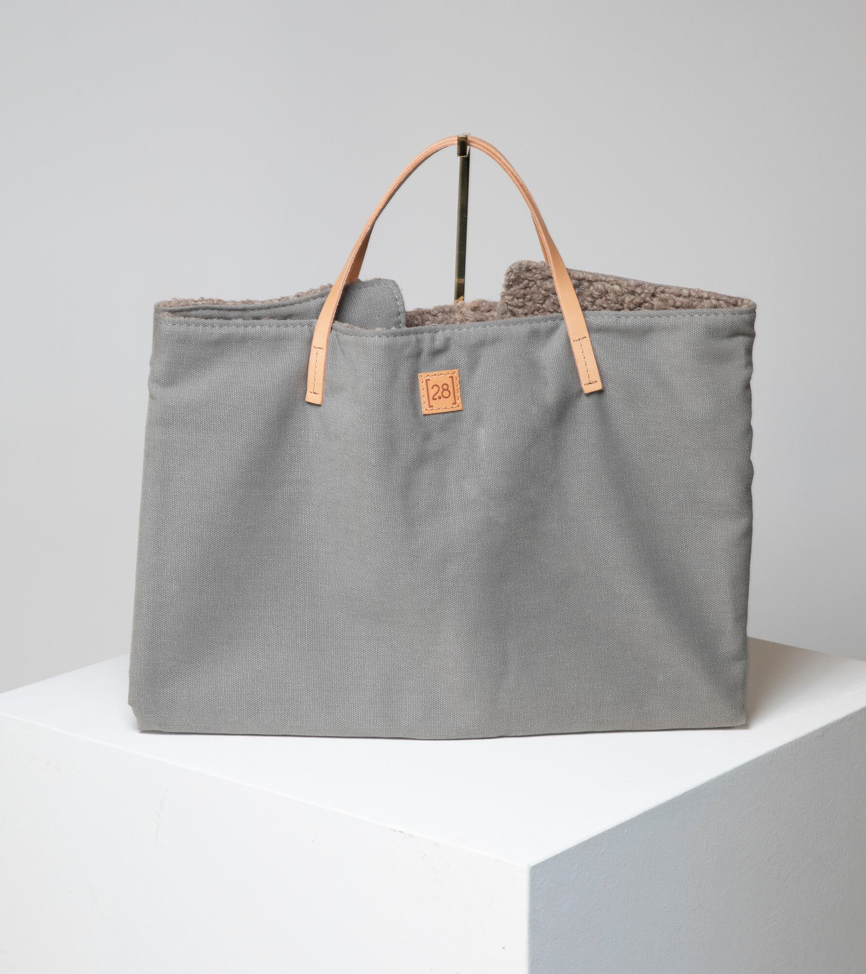 ■内側は柔らかいブークレウールで本革の持ち手とロゴ付き