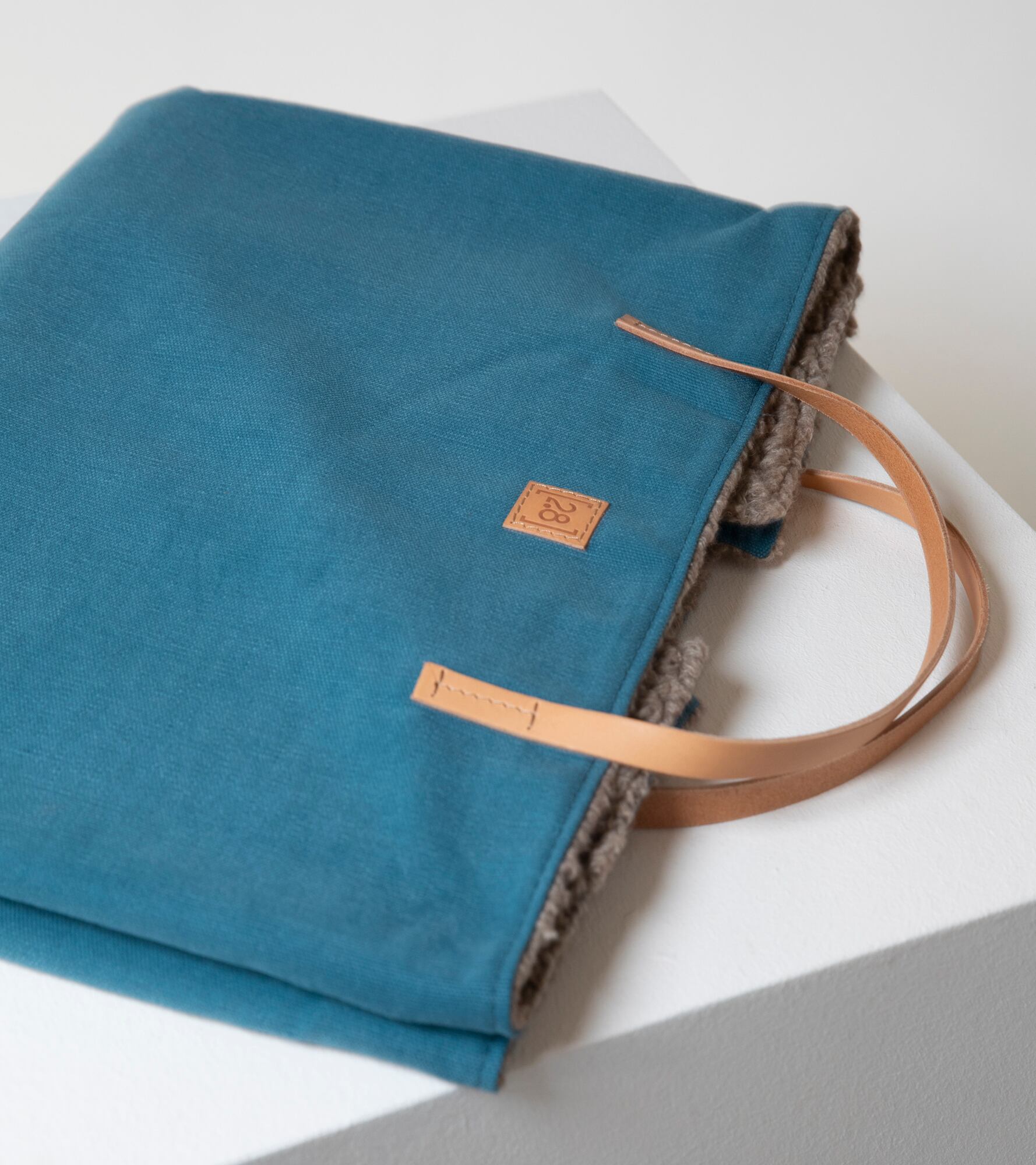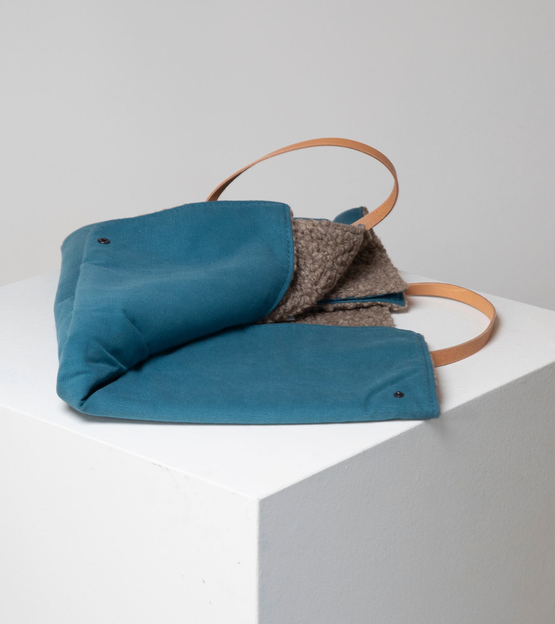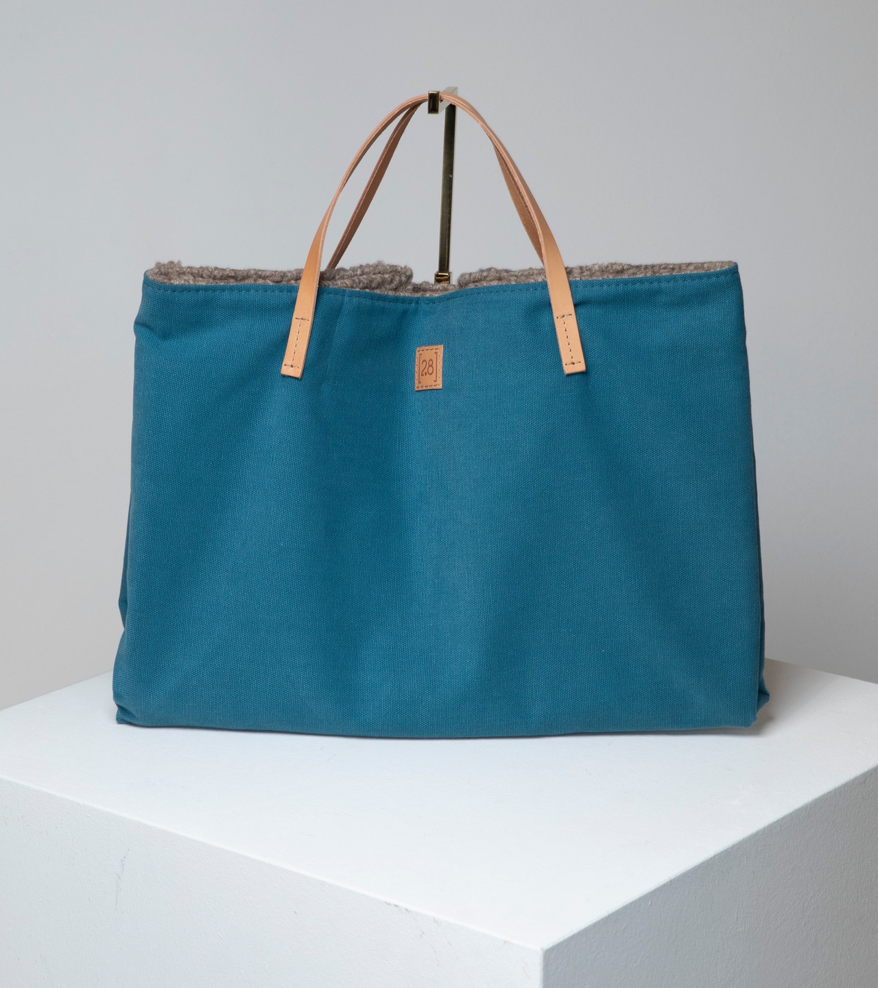 ■内側は柔らかいブークレウールで本革の持ち手とロゴ付き