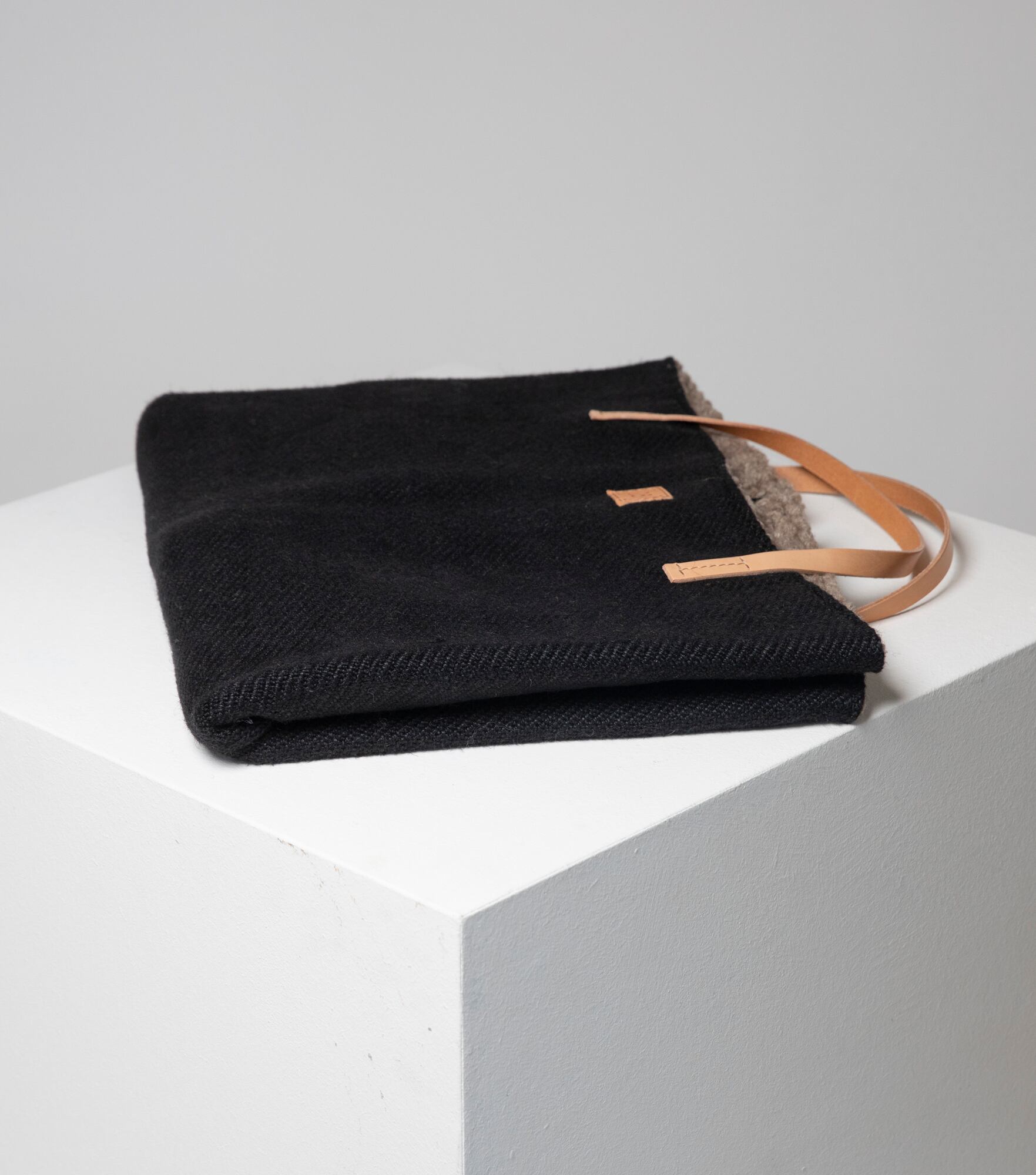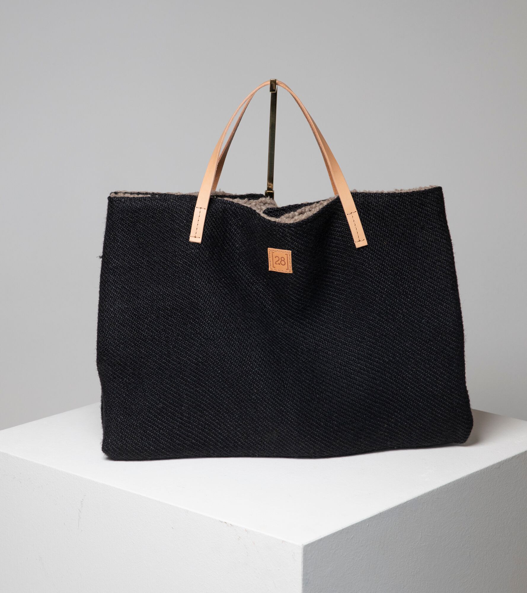 ■内側は柔らかいブークレウールで本革の持ち手とロゴ付き