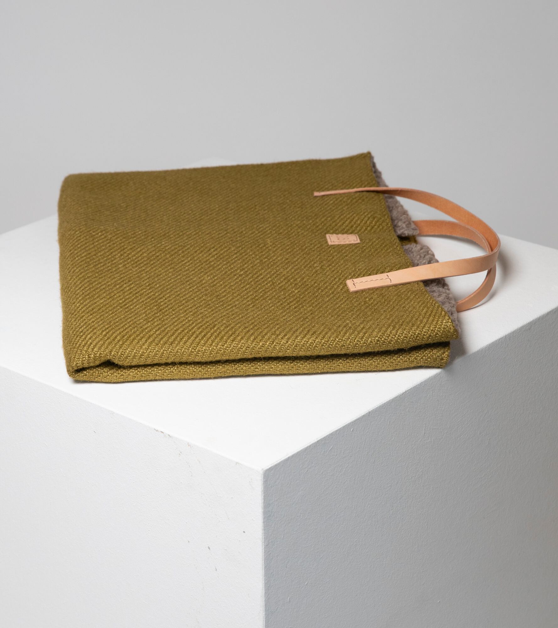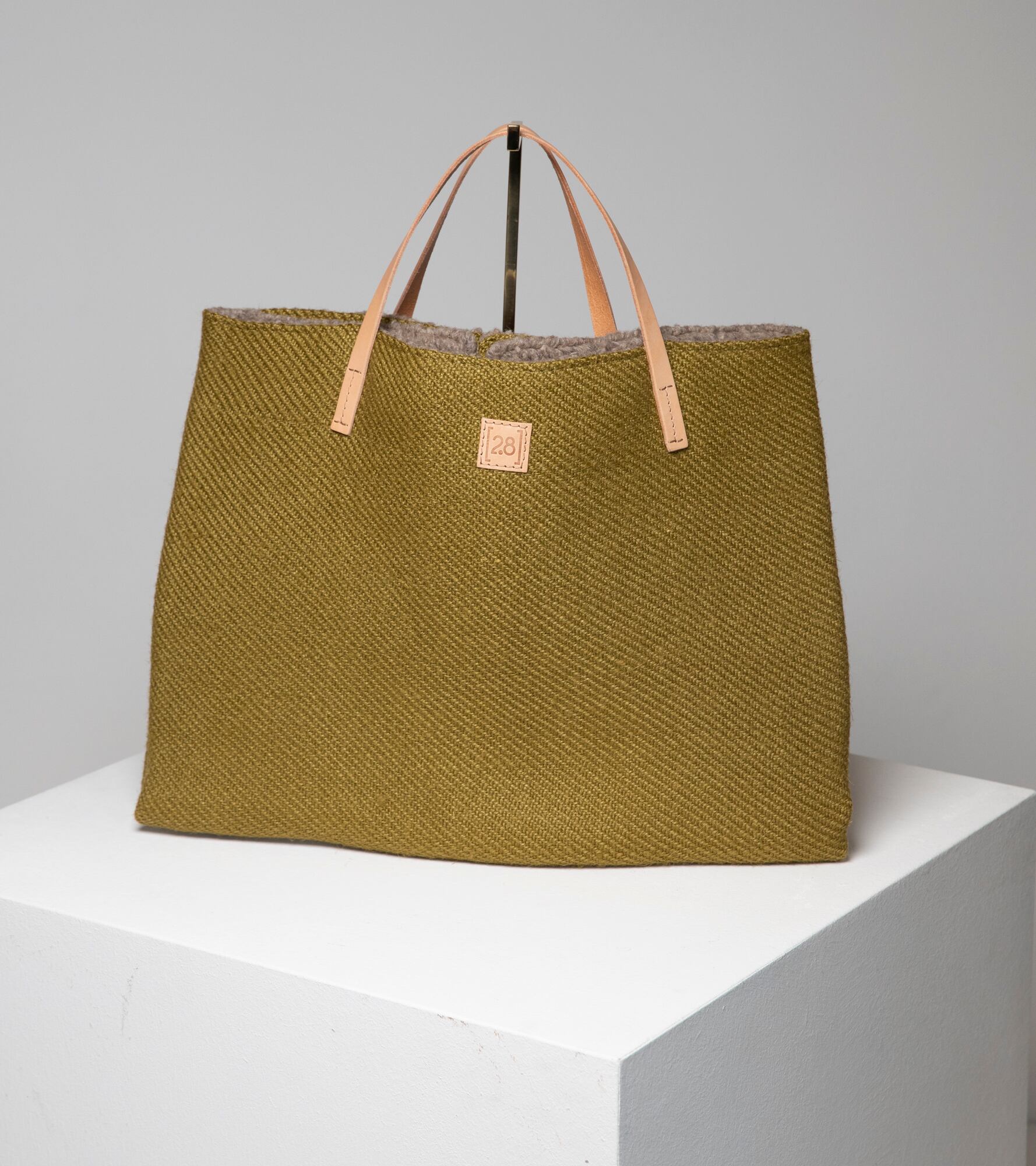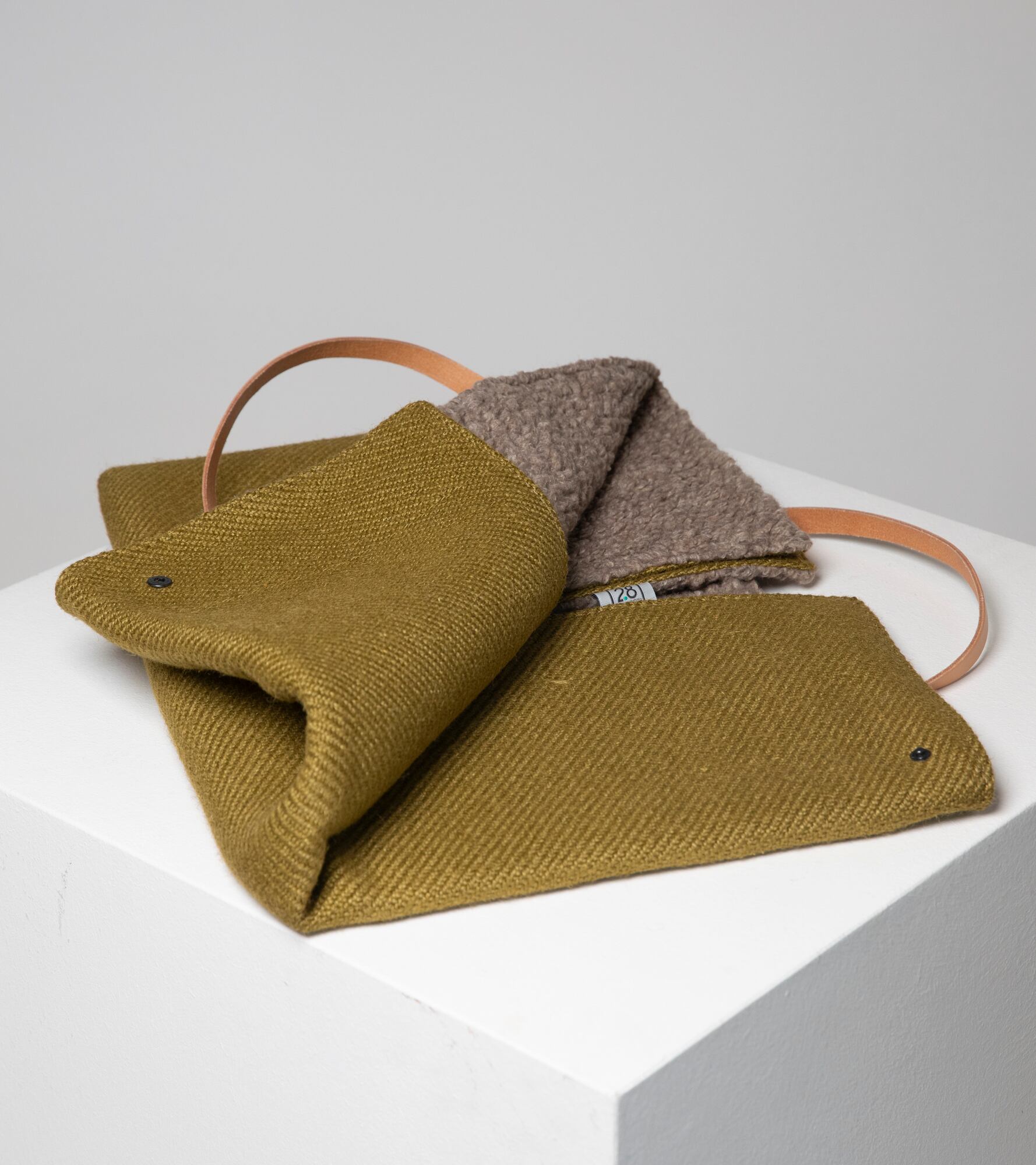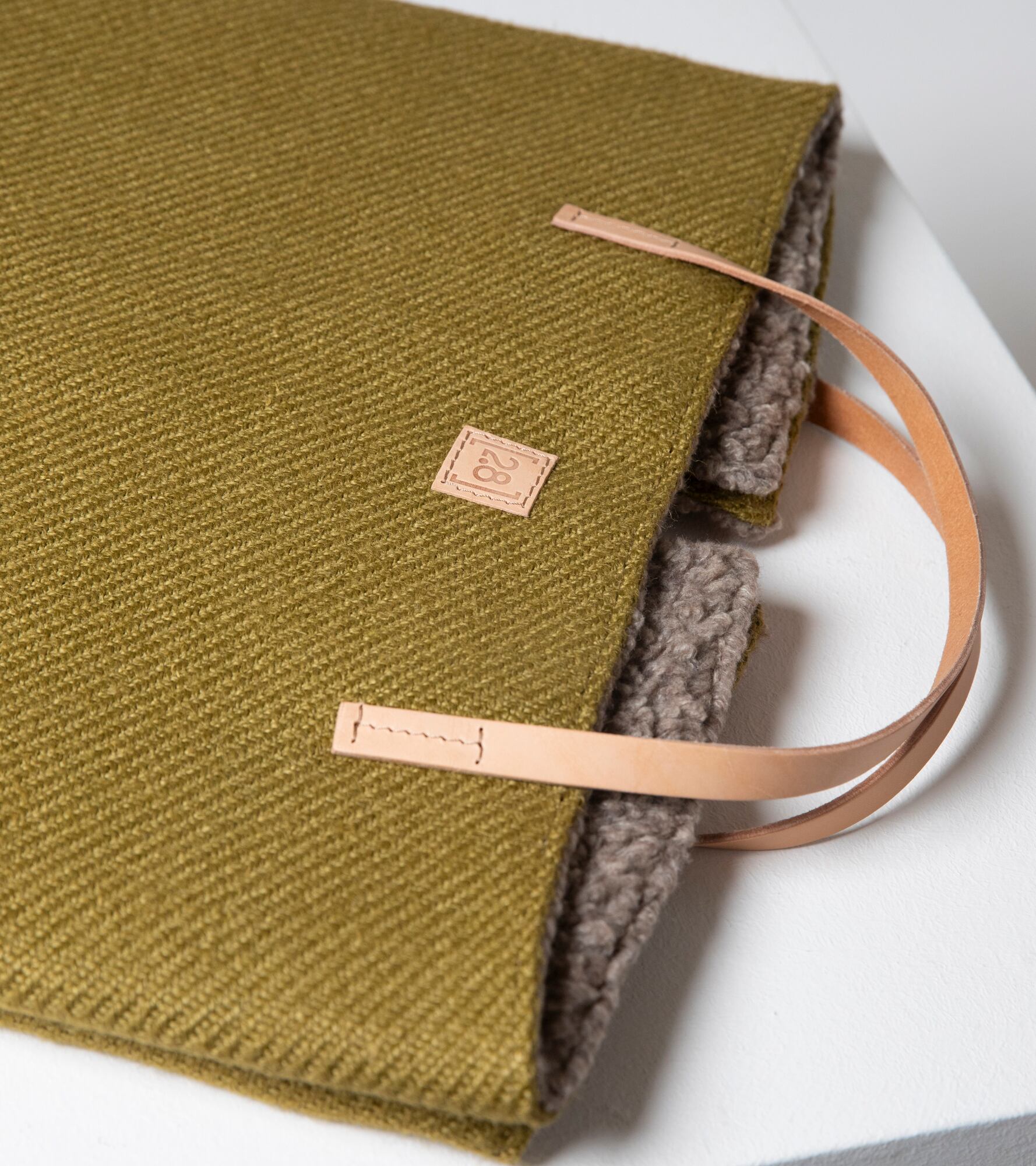 ■内側は柔らかいブークレウールで本革の持ち手とロゴ付き